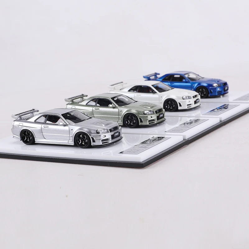 Experience the thrill of owning a meticulously crafted miniature version of the legendary Nissan Skyline GT-R (BNR34) Nismo Z-tune. This limited edition diecast model captures every detail of the high-performance sports car, from its sharp body lines to its aggressive stance. Available in four vibrant colors—glossy blue, pearl silver, metallic silver, and pristine white—each model radiates a dynamic, sporty allure. Crafted with high precision, the model features detailed grille, headlights, side mirrors, and black wheels that add to its realism. Perfect for enthusiasts, this collectible brings authenticity and style to any display or collection, making you feel connected to this legendary icon whenever you see it.
