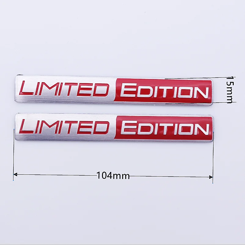 Transform your vehicle with these exclusive Limited Edition car badges, crafted from durable 3D aluminum alloy for a sleek, premium look. Measuring approximately 104mm by 14mm, each sticker offers a striking metallic finish that enhances any vehicle’s aesthetic. Their bold, vibrant color options—ranging from glossy black with red accents to brushed silver, vivid red with silver, and white or silver backgrounds with blue details—allow you to customize your ride’s style effortlessly. Designed for both internal and external use, these waterproof, non-fading stickers feature a reinforced adhesive back for easy peel-and-stick application. Adding these badges gives your car or motorcycle a modern, industrial feel that stands out while ensuring long-lasting durability.