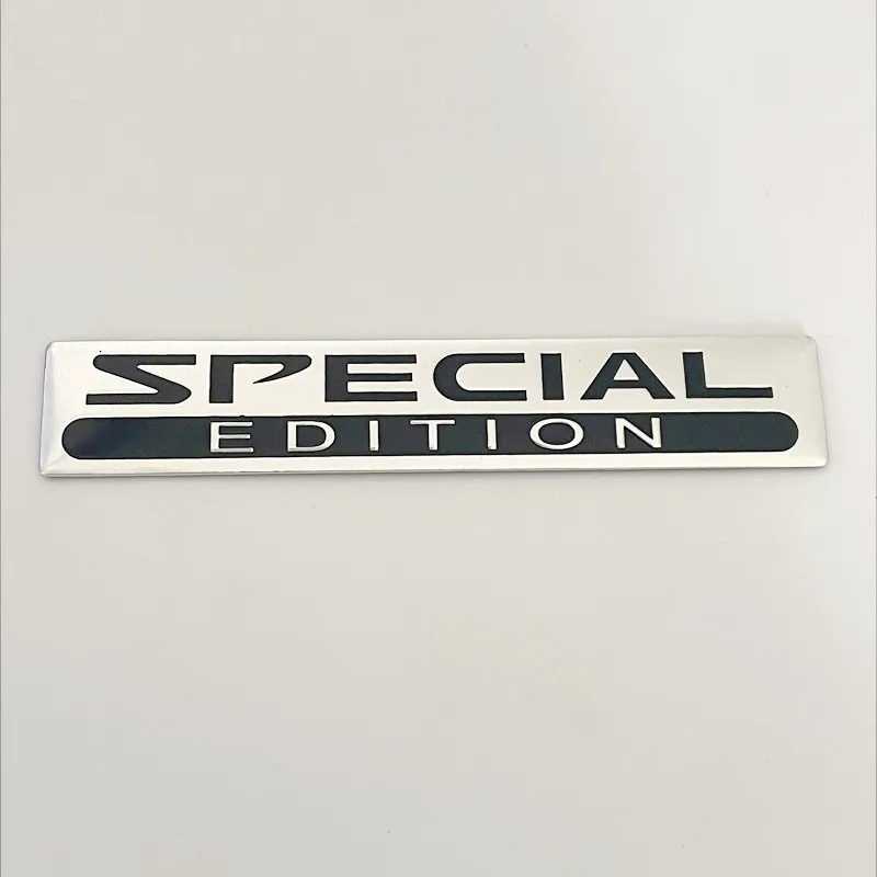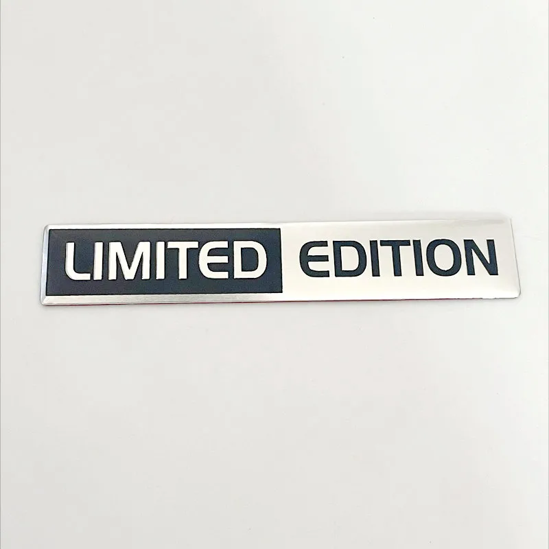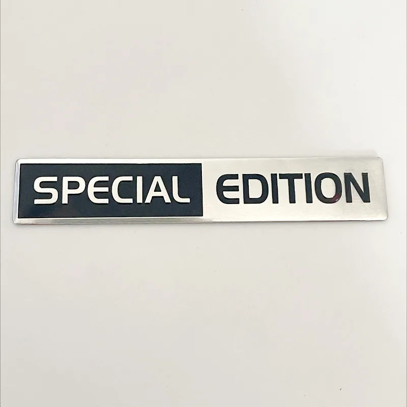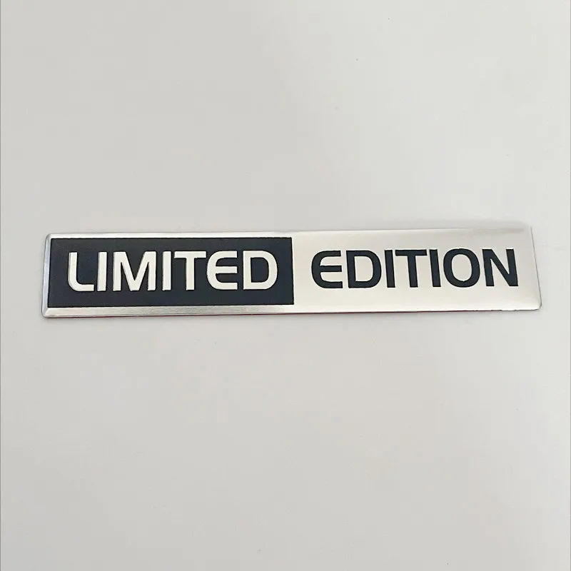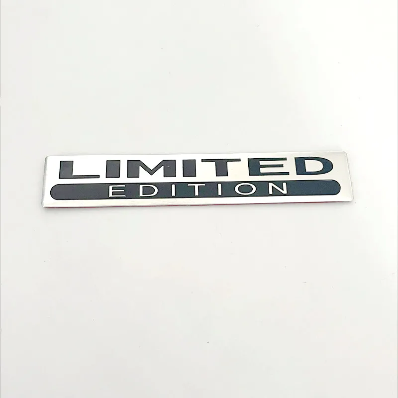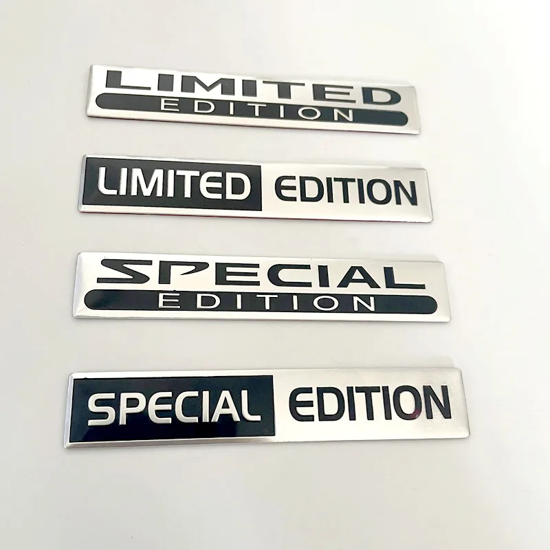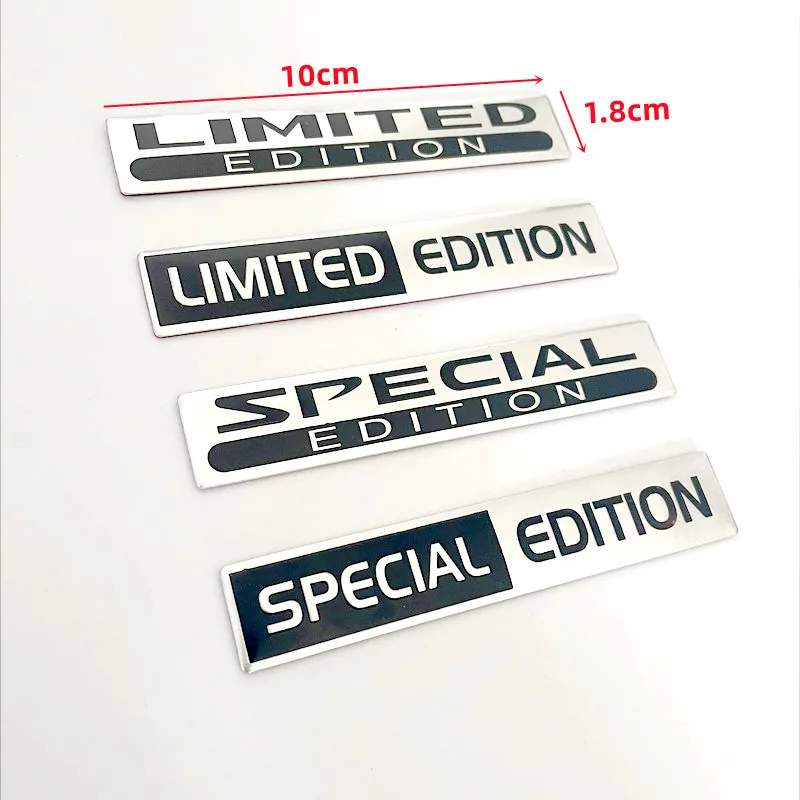 Transform your vehicle with this sleek, high-end limited edition car emblem that exudes sophistication and exclusivity. Crafted from durable aluminum with a reflective metallic finish, this badge features a modern 3D design and bold, sharp lettering. It measures approximately 10cm long and 1.8cm wide, making it ideal for full-body placement on your car’s surface. Available in four striking color combinations—Limited Black Silver, Limited Silver, Special Black Silver, and Special Silver—these badges enhance your vehicle's aesthetic. Whether for personal expression or adding a touch of luxury, this emblem creates a standout appearance. Its minimalist yet bold design fits seamlessly on various vehicle models for a unique, custom look that lasts.
