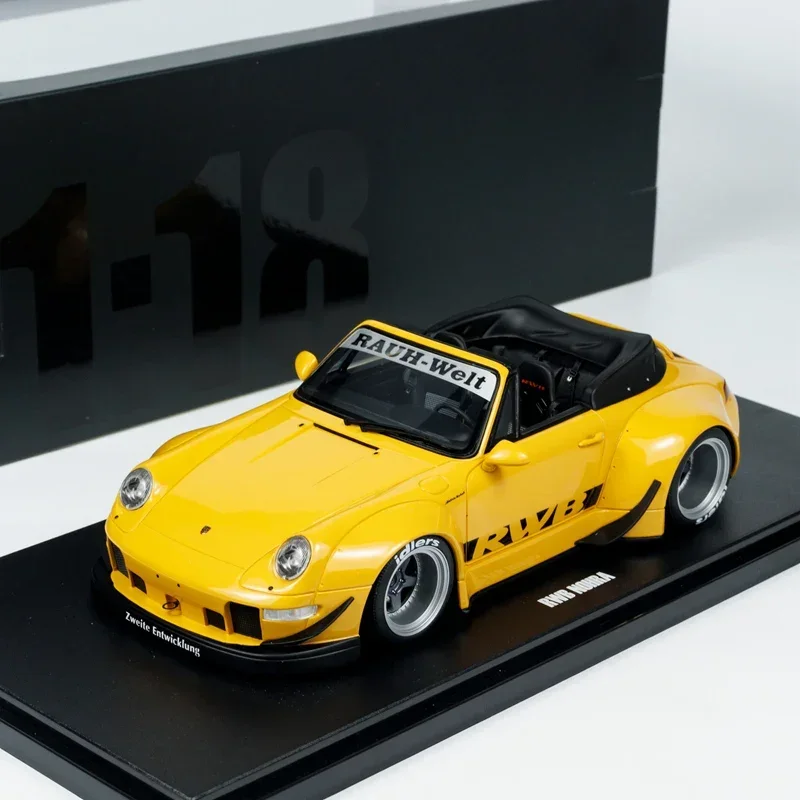 Discover the stunning charisma of this limited edition Porsche RWB Nohra 2023 resin model, perfect for collectors and enthusiasts. With its vibrant bright yellow exterior, this 1:18 scale replica captures the sleek, aerodynamic design of the original sports car. The model features wide fender flares, a low front bumper with large air intakes, and a subtle, flat hood that enhances its aggressive stance. The seamless integration of double round headlights, black side accents, and multi-spoke silver alloy wheels with visible brake calipers further elevates its realism. Crafted from durable resin, plastic, and rubber, this static display piece offers exceptional detail and quality, making it an ideal decoration or gift for car lovers. Experience a powerful visual appeal that celebrates automotive craftsmanship.