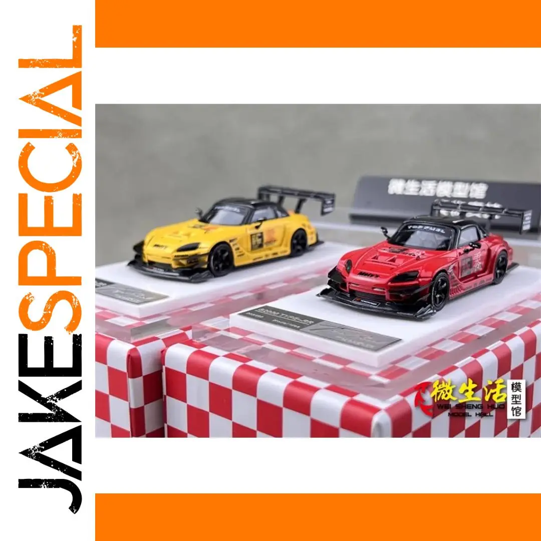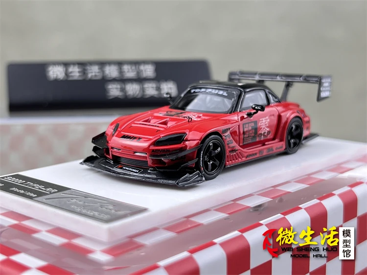 This highly detailed 1:64 scale resin car model measures approximately 7 cm and depicts the Top Fuel Type-RR S2000 AP1. Crafted from diecast resin, it features a sleek, aerodynamic design with vibrant finishes in bright red and vivid yellow, accented with realistic decals and graphic details. The model showcases sharp edges, smooth curves, and intricately detailed black wheels with rims, emphasizing its sporty aesthetic. Hand-finished with slight variations that add character, this collectible is suitable for ages 14 and above. It is not a toy, does not contain batteries or chemicals, and adheres to CE standards, making it an ideal display piece for automotive enthusiasts and collectors.