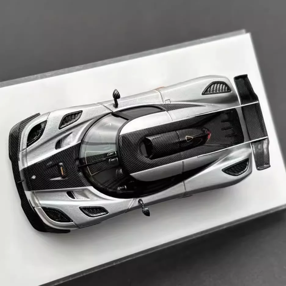 Immerse yourself in the world of high-performance automotive art with this exquisite 1:64 scale resin model of a supercar. Crafted with remarkable detail, it features a sleek, aerodynamic silhouette finished in a striking metallic silver or chrome hue, accented by contrasting textured black elements that mimic carbon fiber. The aggressive front design showcases sharp angular headlights, a broad grille, and detailed air vents, exuding a powerful presence. The smooth flowing side lines and prominent rear wing emphasize its race-inspired aesthetic, perfect for display in any collector’s space. Hand-assembled with precision, each piece reflects craftsmanship, with some minor imperfections adding to its authentic charm. This ornament elevates your decor and celebrates automotive excellence.