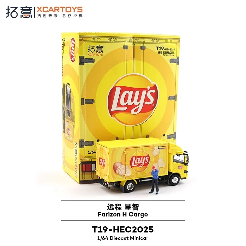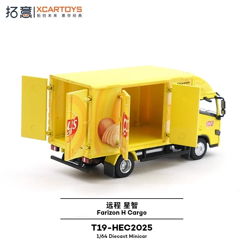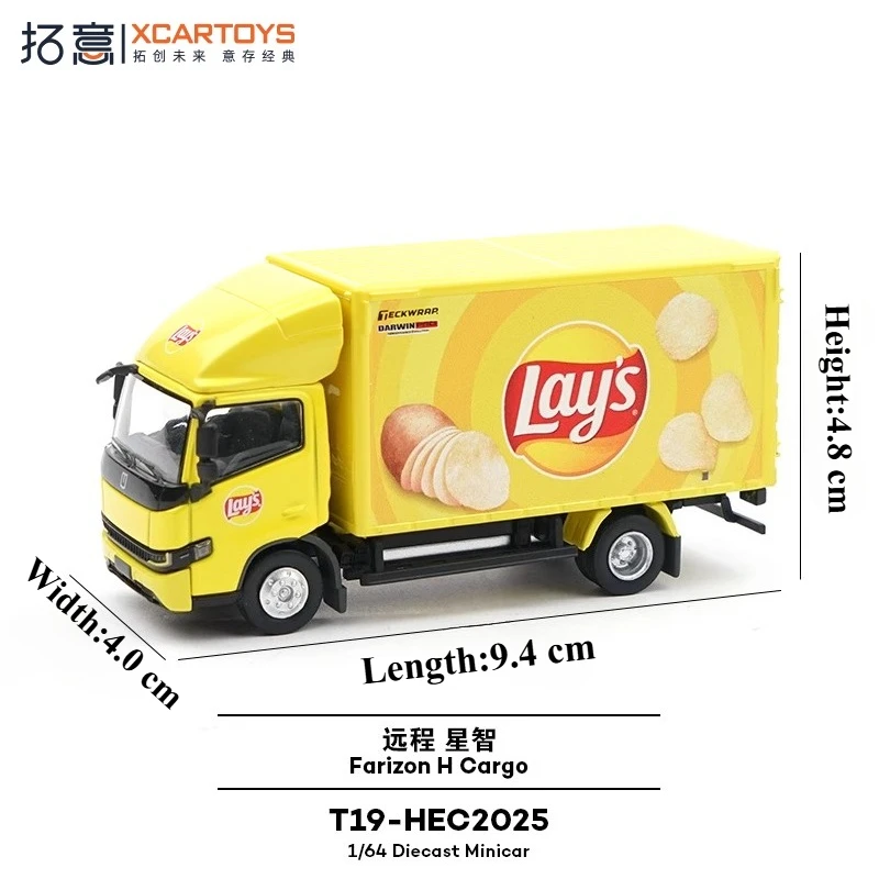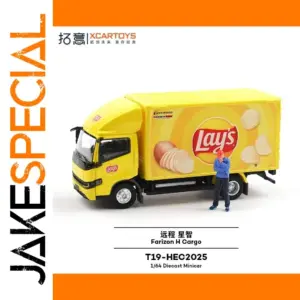This 1:64 scale die-cast model features a vibrant yellow potato chip truck with black accents, realistic silver wheels with detailed hubcaps, and a rectangular cargo box with a ribbed yellow surface. The sides display vivid red and white Lay’s logo and chip imagery, capturing the playful yet sleek design. Made of durable metal, this limited edition collectible is perfect for adult collectors and enthusiasts, offering a striking visual appeal and precise detailing. No electrical components or batteries are required, ensuring it remains a high-quality, non-electric display piece. With its bold colors and realistic styling, this model is an engaging addition to any collection.