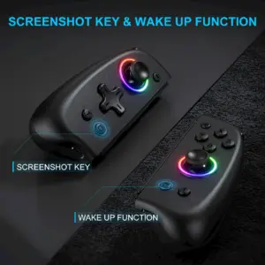 Feel like a pro gamer with this sleek wireless Joy-pad, designed for Nintendo Switch, Lite, and OLED models. Its lightweight, ergonomic shape ensures comfort during long gaming sessions, allowing you to play for hours without fatigue. The vibrant RGB LED rings around each joystick create a colorful, lively visual experience, personalized to match your style. Featuring a Bluetooth connection, it offers stable, fast data transfer to ensure seamless gameplay. With advanced 6-Axis Gyro, Turbo functions, and vibration feedback, you gain precise control and an immersive gaming experience. Available in black or white, this controller adds both style and performance, transforming your gaming moments into outstanding adventures. Elevate your game today with this dynamic, high-performance joy-pad.