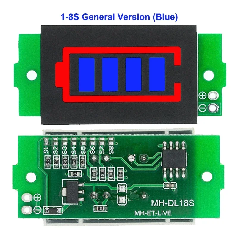 Imagine effortlessly monitoring your lithium battery’s charge level with this sleek, modern indicator module. Designed for 1S to 4S configurations, it features a high-contrast blue display that clearly shows real-time capacity. Its compact, rectangular shape fits seamlessly into your electronic projects or electric vehicle systems. The module’s white outlined battery icon provides a sharp visual cue, while the digital blocks illuminate according to voltage thresholds—1 to 4 blocks—reflecting precise charge levels. Available in vibrant colors like blue and green, with customizable options, this module combines practicality with a clean, contemporary style. It’s an essential tool to ensure your lithium power sources are always ready when you need them most.