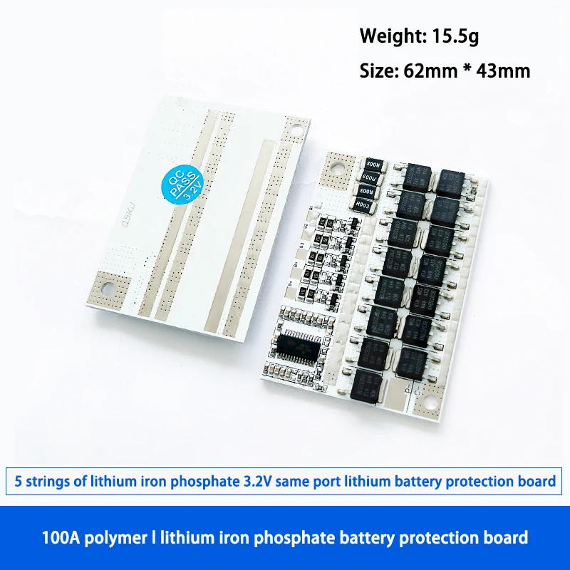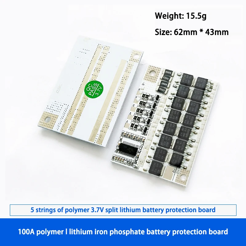 This advanced lithium battery protection board supports 3S, 4S, and 5S configurations with a maximum current of 100A, ideal for lithium iron phosphate, ternary lithium, lithium cobalt oxide, and lithium manganese oxide packs. Featuring mature protection circuitry, special ICs, and ultra-low resistance MOSFETs (as low as 3 milliohms), it ensures safe, balanced charging and discharging. The device supports disconnection protection, offers reliable hardware balance current, and maintains optimal thermal performance, preserving battery pack efficiency. Modular and customizable, it provides dependable voltage and current regulation for various lithium-ion battery applications, ensuring long-term safety and stability.
