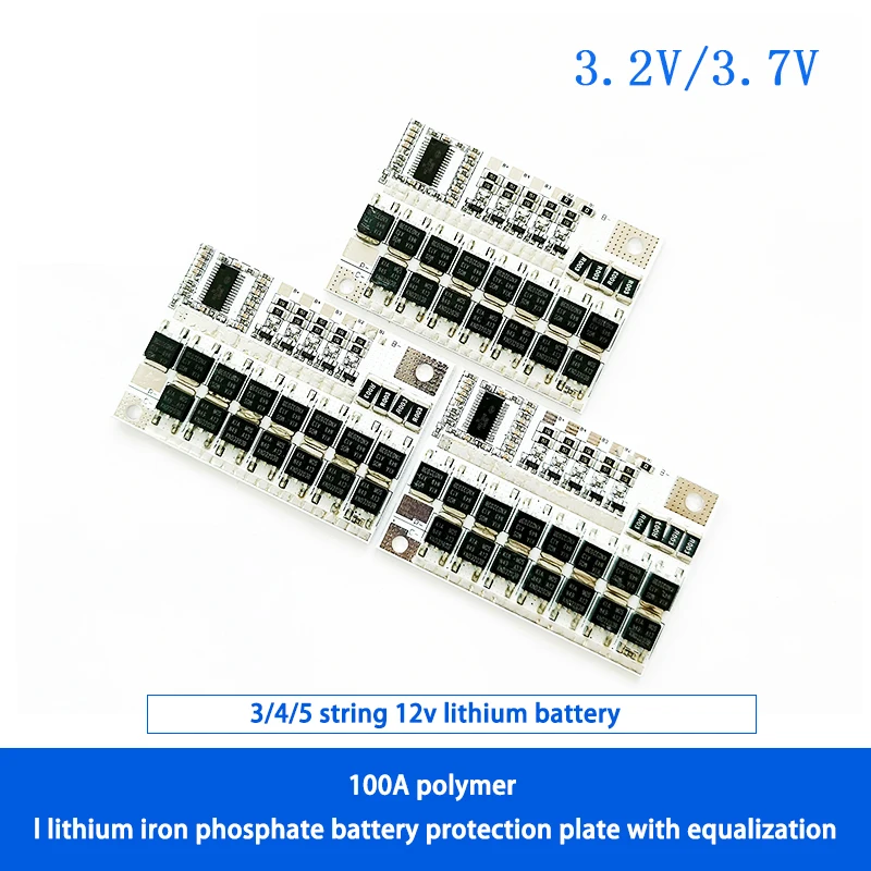 Experience reliable battery management with this protection board designed for various lithium-ion packs. Featuring a crisp white base, neatly arranged black resistors, capacitors, MOSFETs, and integrated circuits, it exudes a professional, technical aesthetic. Designed with durability and stability in mind, this protection board supports 3S, 4S, and 5S configurations, handling currents up to 100A. Its minimalistic yet precise design ensures optimal protection during charging and discharging, balancing cells effectively without overheating or sacrificing performance. Suitable for lithium iron phosphate, ternary lithium, lithium cobalt oxide, and lithium manganese oxide batteries, this module offers customizable features to match specific needs. Whether you're building a pack or replacing a worn component, this protection board guarantees safety, durability, and efficiency.