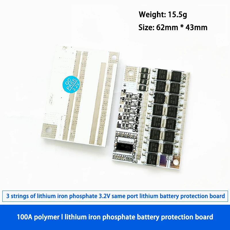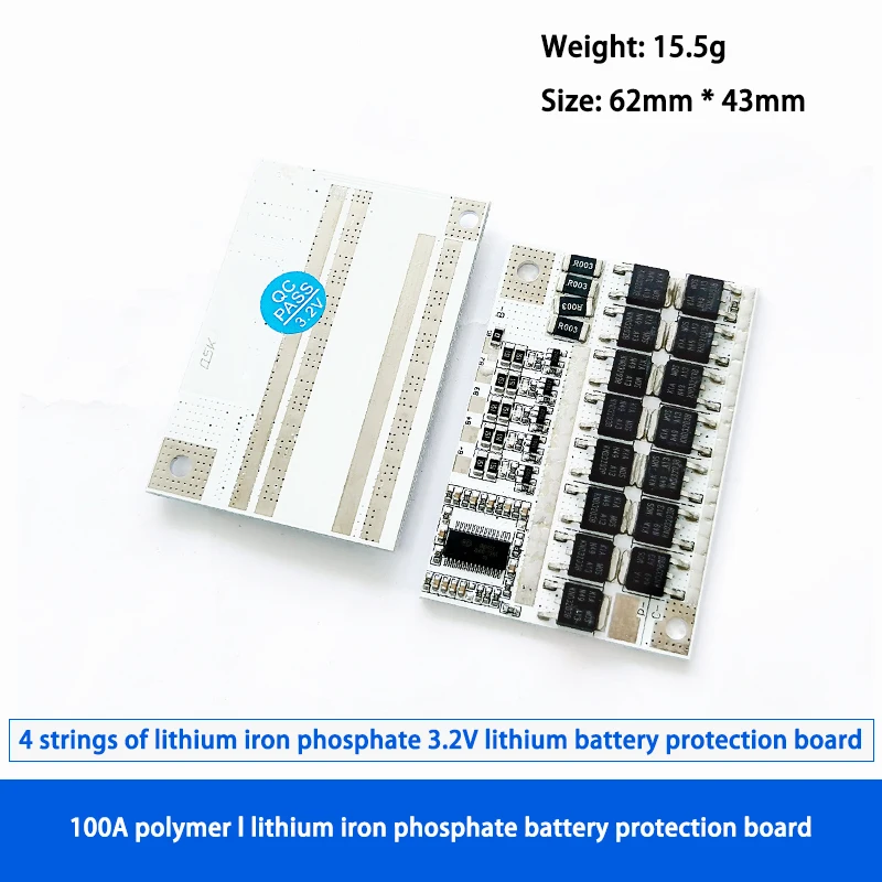 - The protection circuit supports 3S, 4S, and 5S battery configurations, ensuring flexible application for various lithium cell packs up to 100A current.