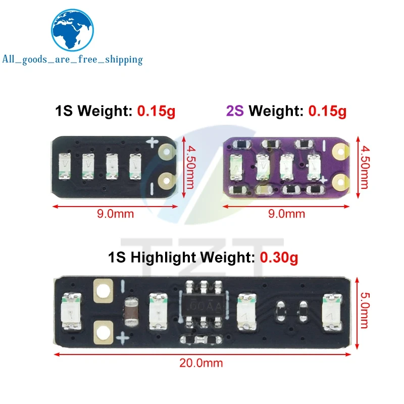 - The module supports 1S, 2S, and 3S lithium battery configurations, covering voltage ranges from 3.7V to 4.2V for versatile applications.