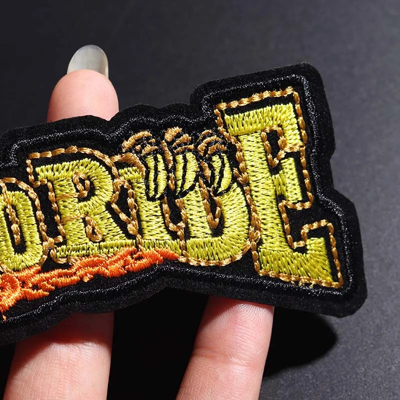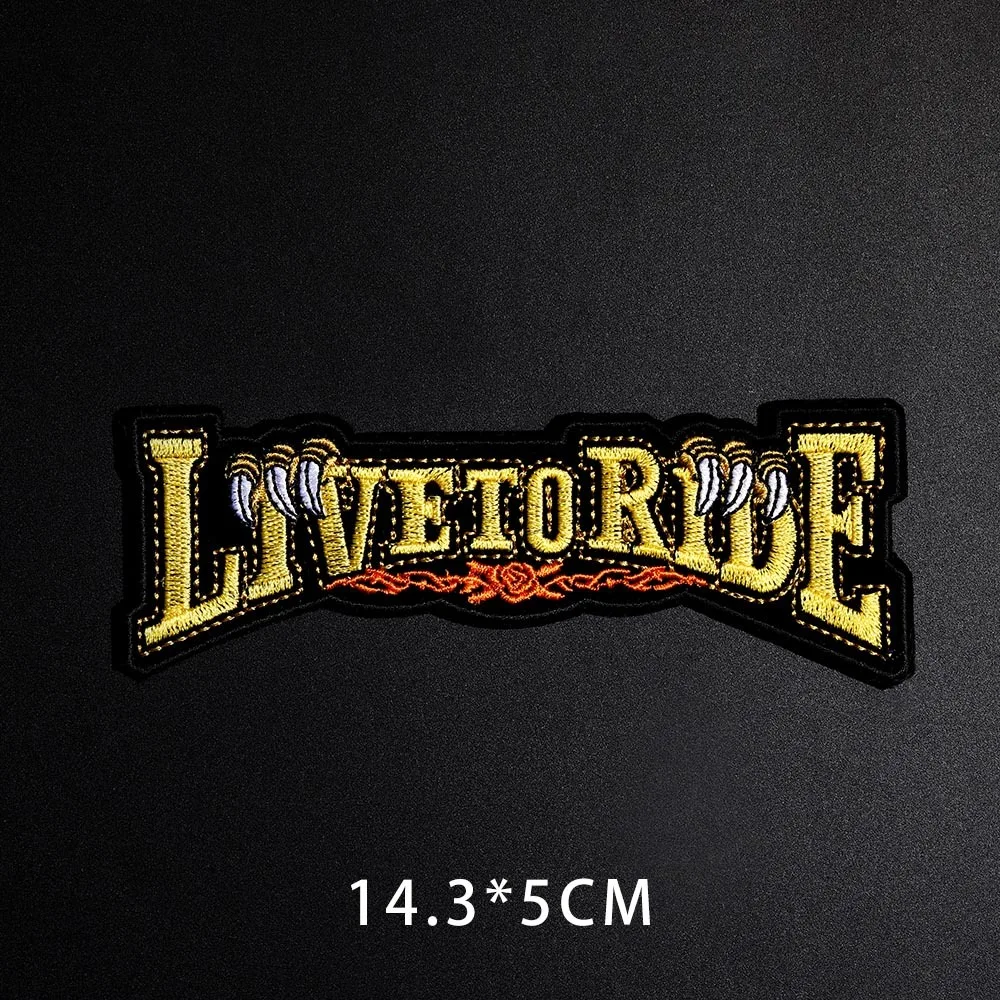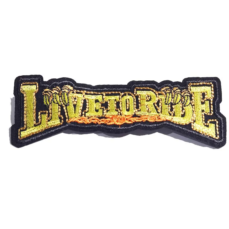 This stunning embroidered patch features the powerful phrase “LIVE TO RIDE” displayed in bold, colorful lettering that embodies adventure and freedom. With a bright yellow and gold gradient, contrasted by dark outlines and accented by stylized flames in orange beneath the word “RIDE,” this patch captures the essence of a thrill-seeker's spirit. Measuring 14.3 cm in width and 5 cm in height, it is crafted from durable non-woven fabric, ensuring longevity in its use. Designed for iron-on application, it effortlessly adheres to your favorite clothing or bags, satisfying all your creative DIY aspirations. The smooth black background further enhances its vibrant colors, making it an eye-catching finishing touch for any outfit.