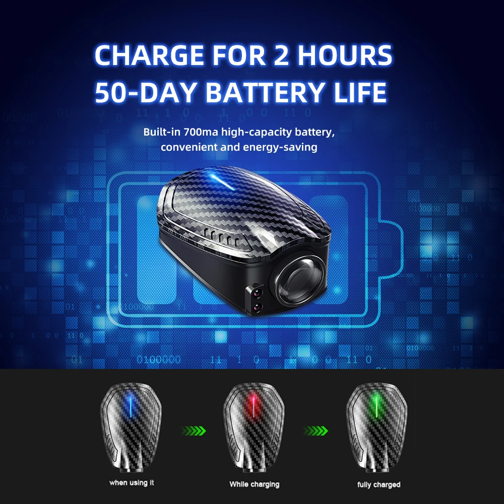 - Compact rectangular design measuring 73mm x 53mm x 30mm with a textured carbon fiber black outer casing adds modern style.