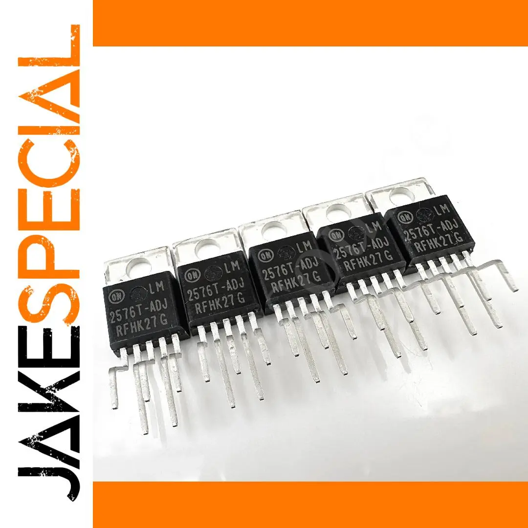Create reliable power solutions effortlessly with this set of five original LM2576TV-ADJ step-down regulator ICs. Designed with precision, each chip features a TO-220-5 package, perfect for converting higher DC voltage into a stable, adjustable output. Whether you're building an industrial project, a hobbyist circuit, or repairing existing electronics, these high-quality regulators promise consistent performance. Their sleek, black plastic body with crisp white labeling and silver leads exudes a modern, professional appearance. The slightly bent metallic leads facilitate easy installation, while the durable metal tab adds robustness. Trust these regulators to deliver efficiency, stability, and power reliability in your applications while elevating your technical projects.