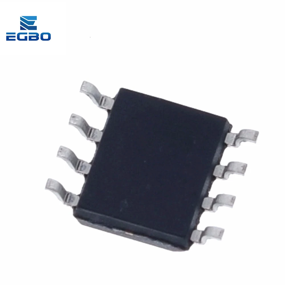- Designed in a slim SOP-8 (SMD) package with black plastic body and white silkscreen markings for easy identification and installation. The stainless metallic pins are bent downward for surface-mount soldering.