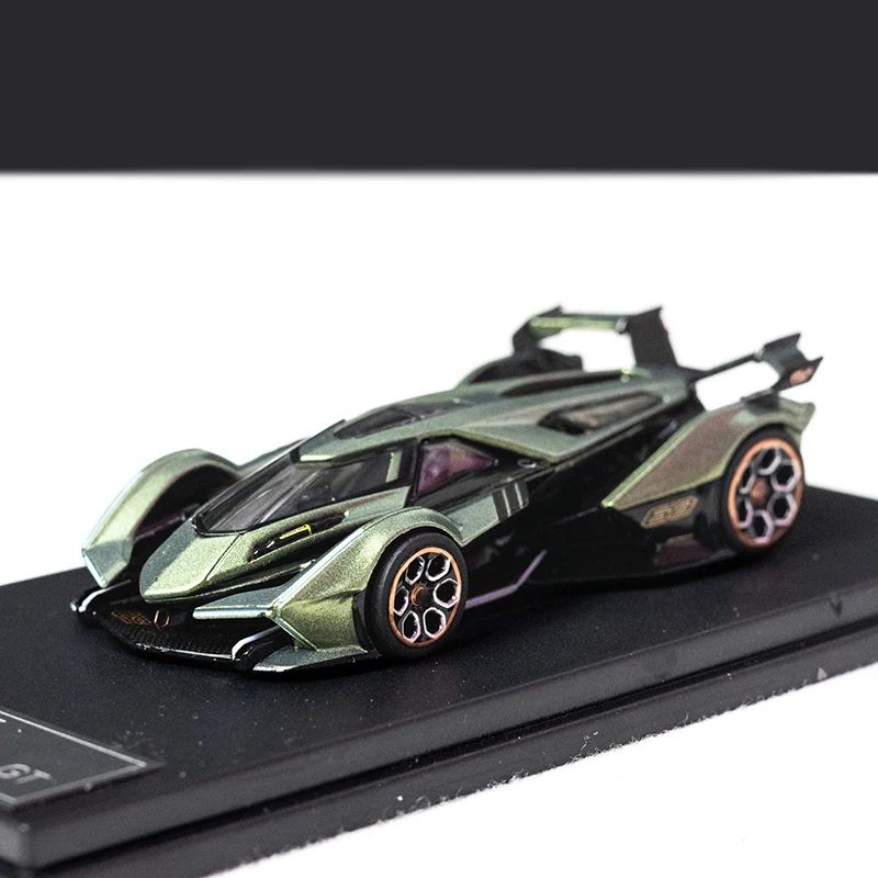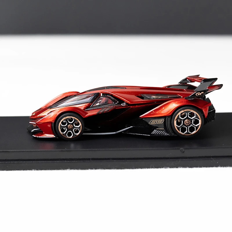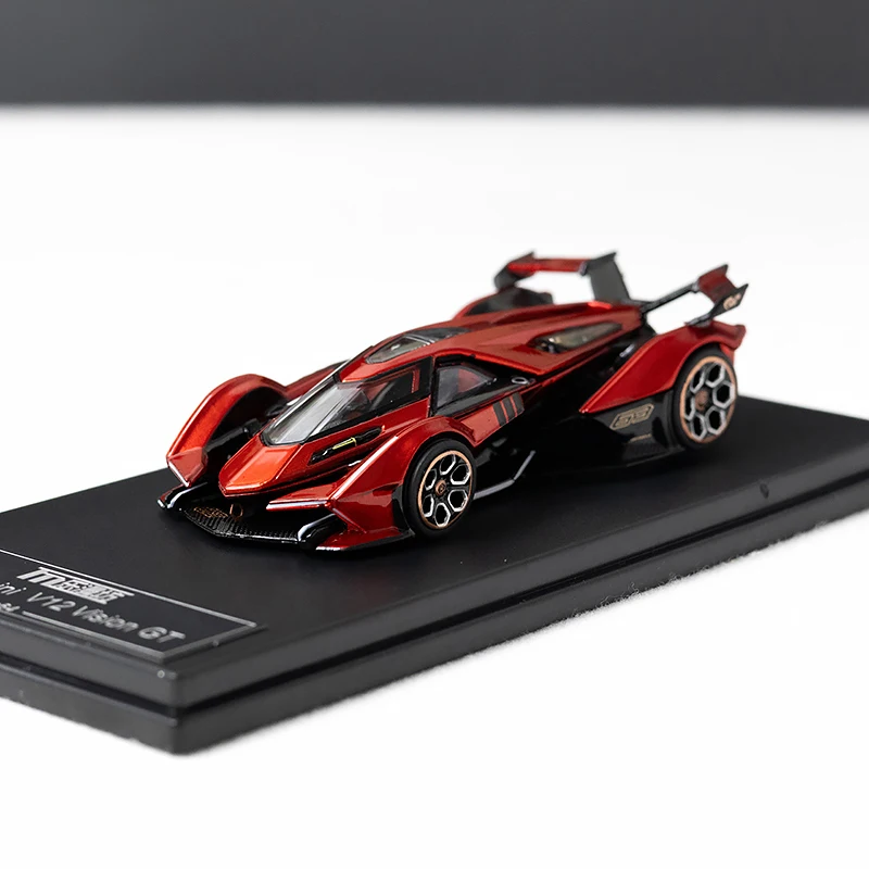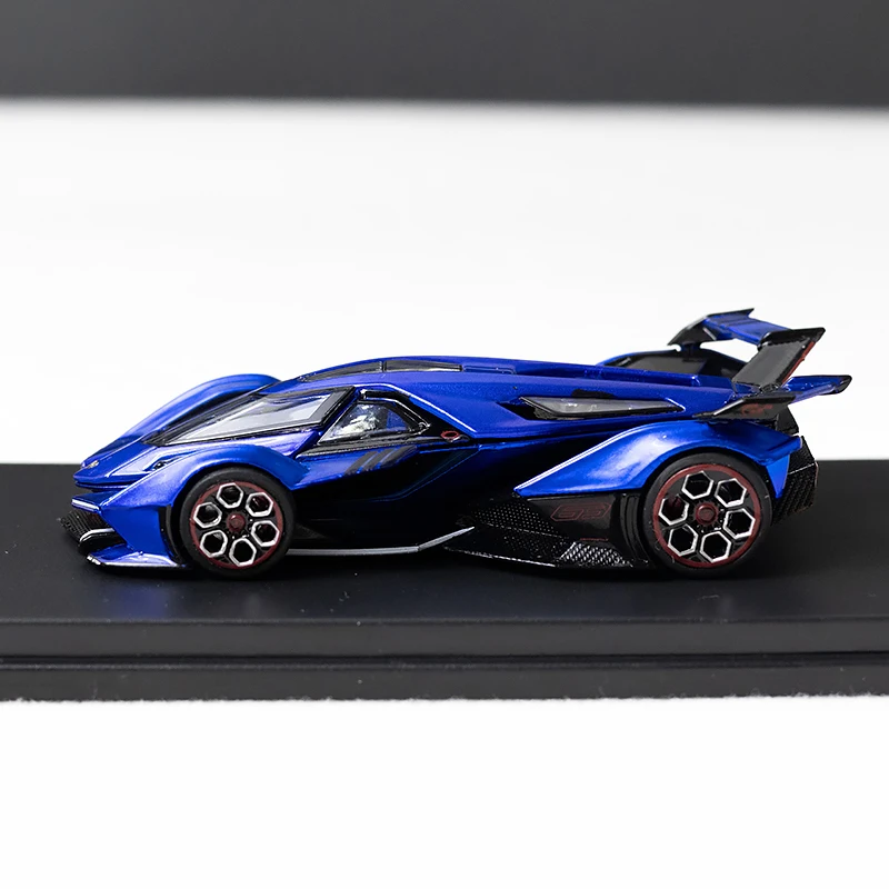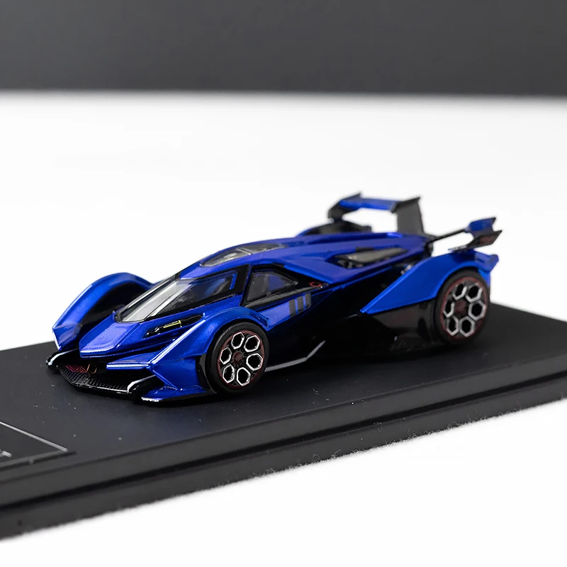 Discover the exquisite LMF 1:64 V12 VGT Alloy Car Model Concept Model Toy Collection, featuring two stunning diecast alloy car models in metallic blue and bold red. Each model, crafted at a 1:64 scale, showcases sleek aerodynamic designs that evoke high-speed racing aesthetics. The blue model features intricate detailing, a prominent front end, and a clear plastic windshield revealing an elaborate interior, while the red model mirrors its aggressive stance, adorned with racing stripe accents. Both models sit on sporty rims, emphasizing their high-performance appeal. Made from high-quality metal, these non-electric models are perfect for display and collection.