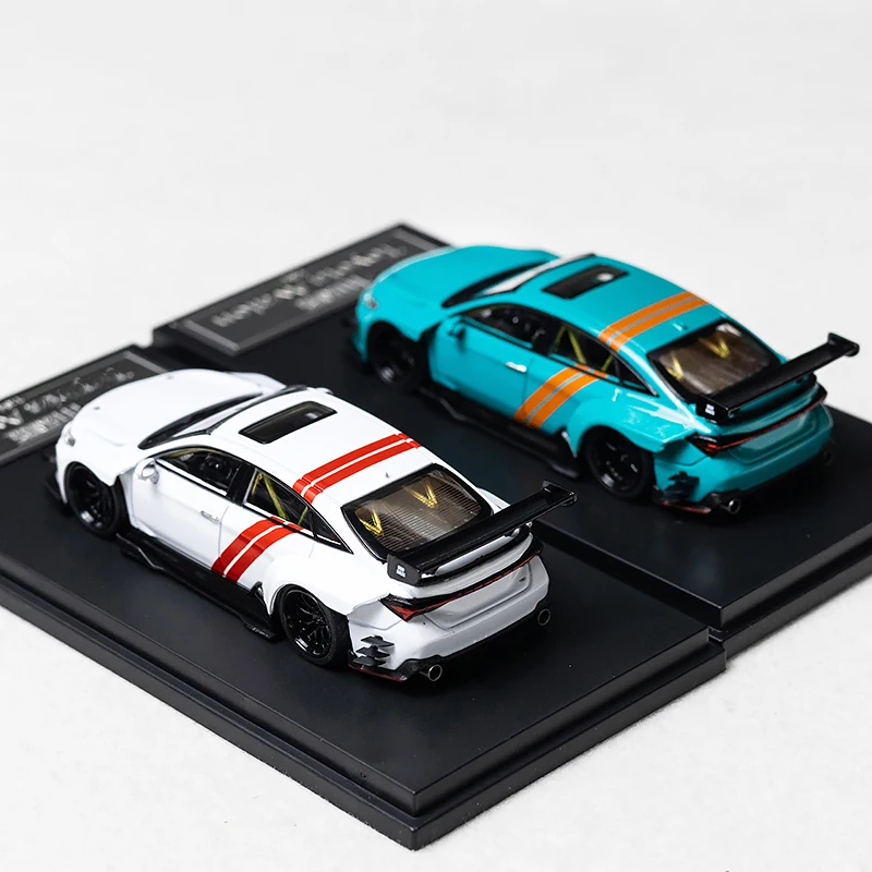 Discover the thrilling world of racing with this exquisite diecast model car set featuring two distinct vehicles, the LMF1:64 AVALON. The vibrant turquoise car with striking orange stripes and the sleek white counterpart adorned with bold red racing stripes capture the essence of speed and sophistication. Crafted from high-quality metal, each model showcases intricate details, from the realistic transparent windshields to the sharply styled wheels. The scale of 1:64 makes these collectible models perfect for display. With no batteries required, these cars are easy to maintain, making them ideal for enthusiasts who appreciate craftsmanship and racing heritage.