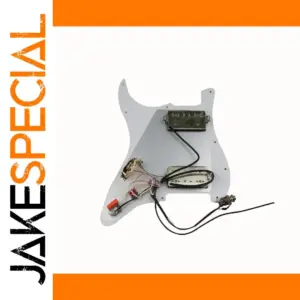 Enhance your Stratocaster-style guitar with this premium three-layer white/black/white prewired pickguard, weighing approximately 300 grams and made of durable alloy. It features two Alnico HH humbucking pickups with flush pole pieces—neck pickup resistance of 7.6K ohms and bridge pickup resistance of 14.8K ohms—offering rich, powerful sound. The complete harness includes a CF potentiometer for volume, a tone control, a serial switch, and a 3-way switch for versatile tonal options. Designed with 11 mounting holes to suit most Strat-style guitars, the pickguard has a glossy finish and comes with a protective film to prevent scratches during installation.