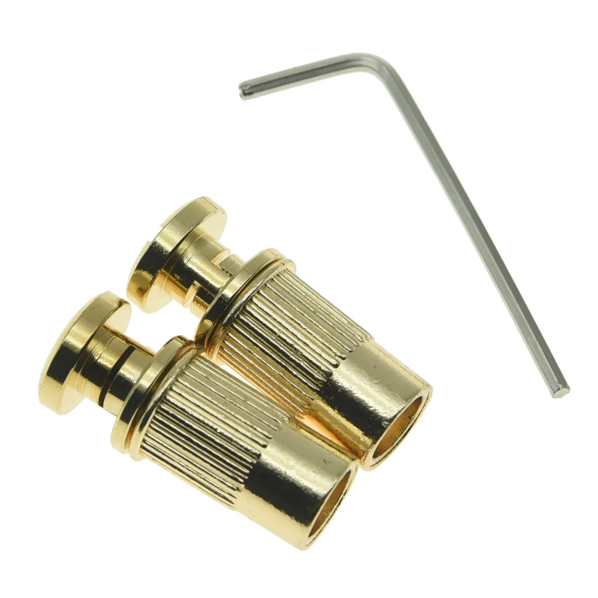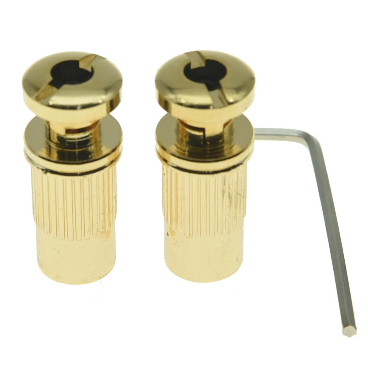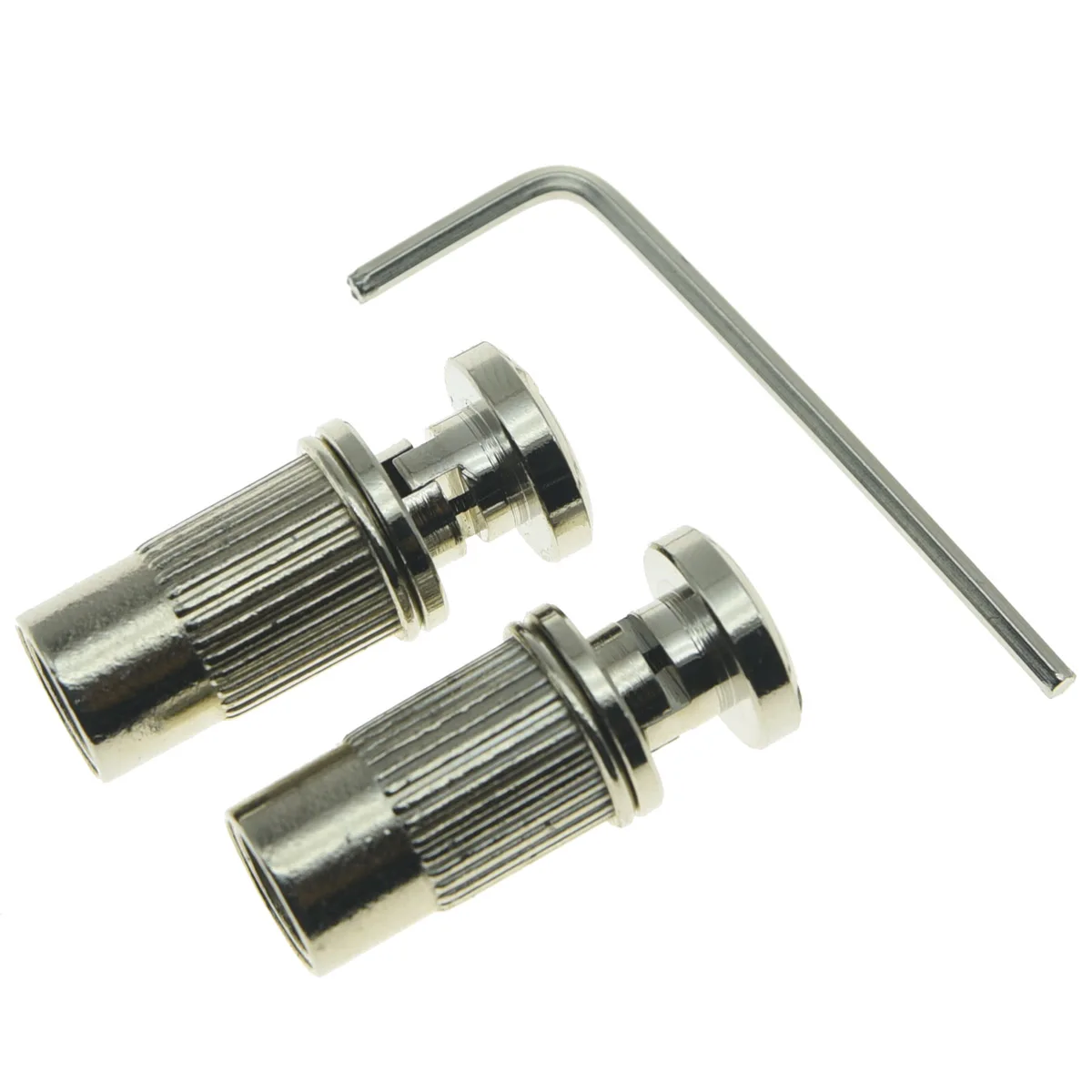 Experience the perfect combination of style and function with this set of four locking tailpiece mount studs, designed to enhance your guitar’s stability and performance. Crafted with a durable steel body and polished caps, these studs feature a sleek chrome, nickel, black, or gold finish, adding a touch of class to any instrument. The knurled or ribbed texture on the cylindrical bodies ensures a firm grip during installation, while the flat circular top with a central slot allows for precise locking. Thanks to the included Allen wrench, you can easily adjust the height for optimal string action and tuning stability. This professional-grade hardware set is ideal for custom guitar setups, promising reliable performance in demanding musical environments.