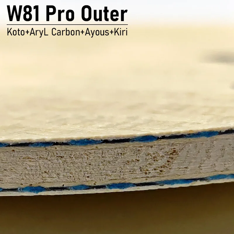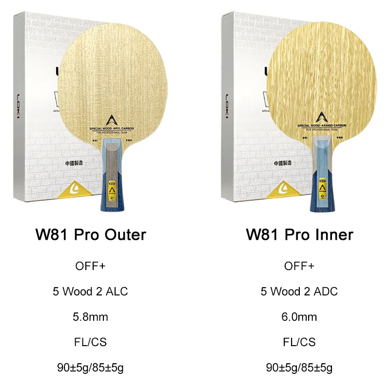 Experience the perfect blend of speed, control, and precision with the this Loki W81 Pro Series Table Tennis Blade. Designed for attacking players, this professional 7-layer blade features innovative carbon technology for dynamic gameplay. The outer carbon version, with a light natural wood finish and fine grain patterns, offers instant bounce and high ball speed, ideal for aggressive play and quick shots. The inner carbon version, darker with textured grain, emphasizes control and sensitivity, perfect for powerful topspins. Both options come with ergonomic long handles, ensuring a comfortable grip during intense rallies. Crafted to meet the needs of serious players, this blade combines sleek aesthetics with advanced performance technology, helping you elevate your game to new heights.