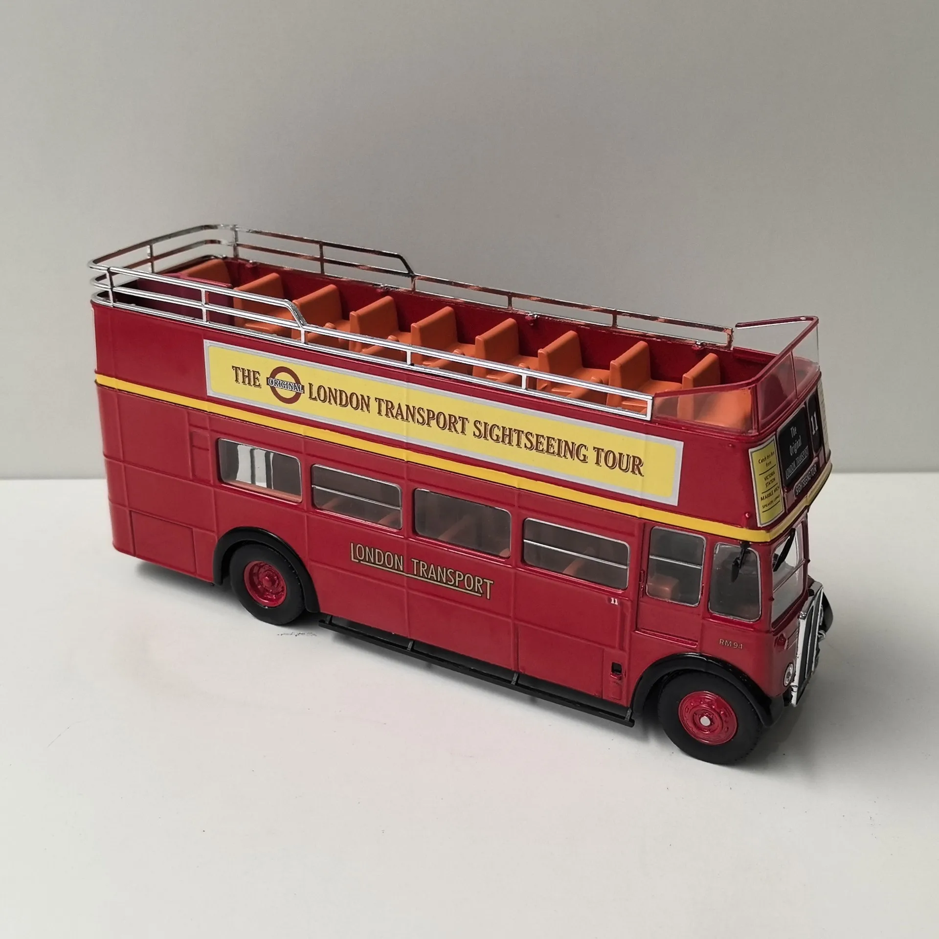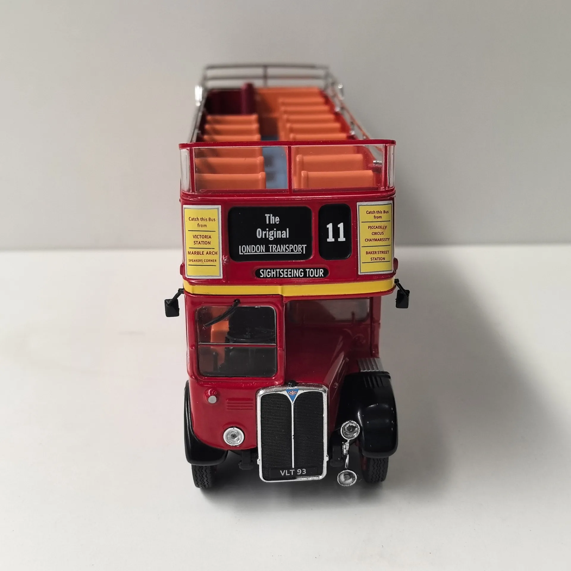 Step into nostalgia with this meticulously crafted diecast model of the iconic 1950 AEC Regent RT bus. Sized perfectly at 1:43 scale, it captures the vintage charm of London’s historic transport with glossy red paint, a detailed front grille, round headlights, and realistic side mirrors. The open top deck features vibrant orange seats, enclosed with a safety railing, inviting you to imagine the bustling streets. The rectangular side windows and signage reading “THE LONDON TRANSPORT SIGHTSEEING TOUR” add authenticity to this collectible. Made from high-quality metal with plastic parts, the model combines durability and elegance. Whether displayed on your shelf or added to your collection, it celebrates timeless London design. Enjoy showcasing this miniature masterpiece that exemplifies classic transport history.