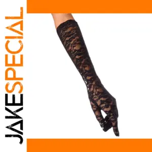 - The gloves extend from the wrist to above the elbow, with the wrist area designed to be smooth and fitted, finished with a scalloped lace edge for a stylish transition.