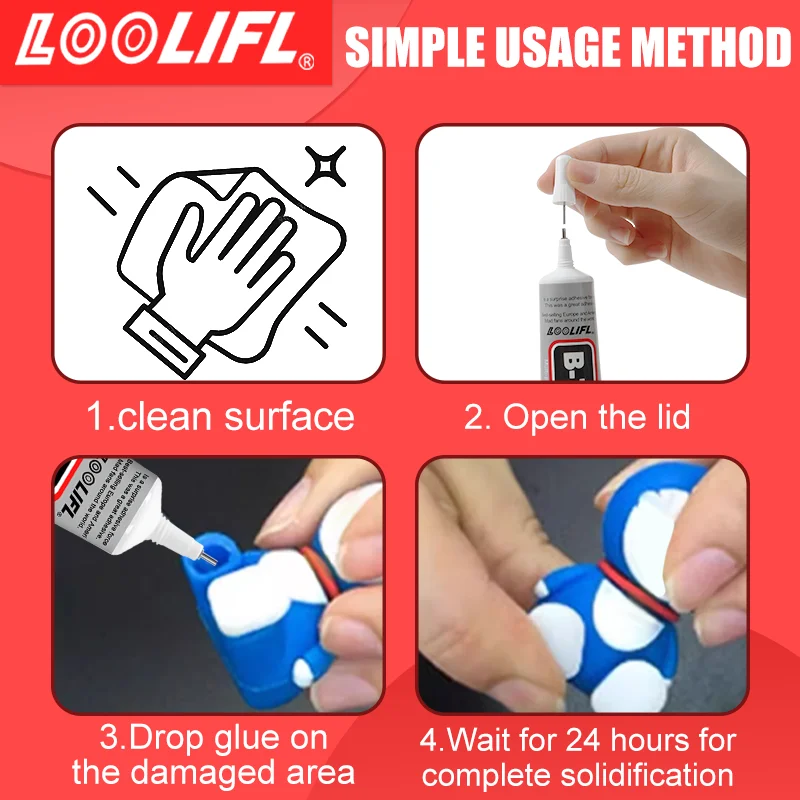 - Technical specifications include a 25ml volume, impact hardness of 65-80A after curing, and excellent tensile elasticity of up to 900%, ensuring strong and flexible bonds for complex projects.