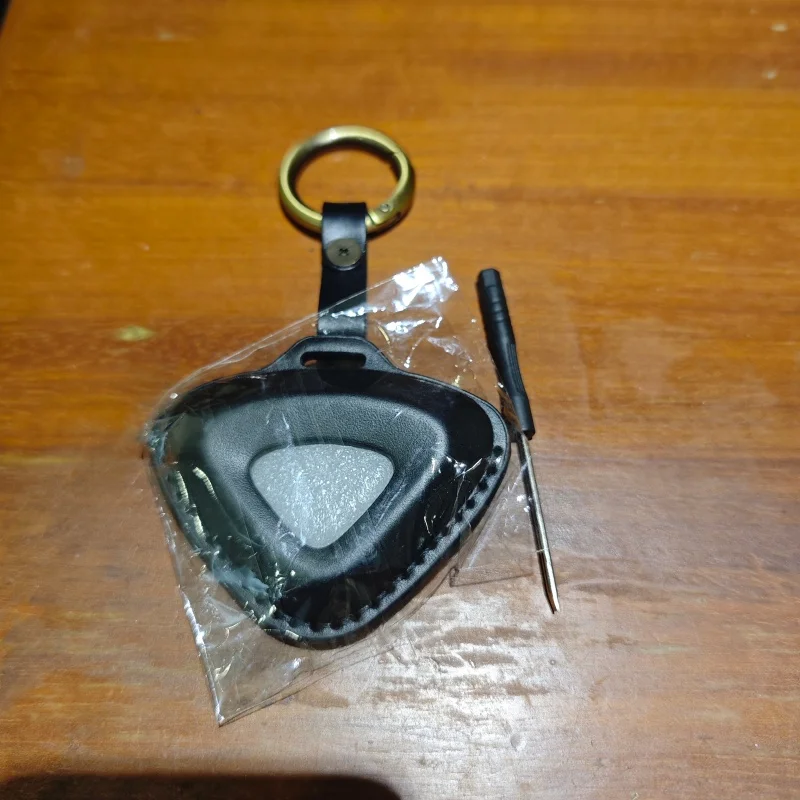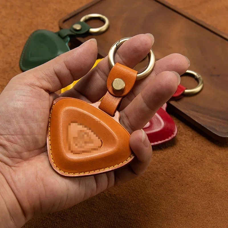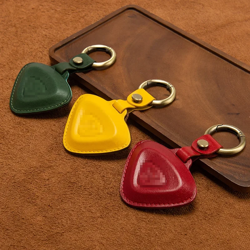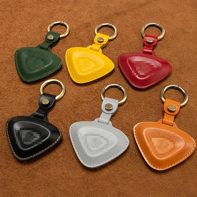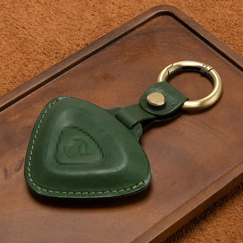 This unique leather key case is designed specifically for Lotus Cars models including the Emira, Evija, Eletre, and Emeya. Crafted from top layer leather, it features a distinct triangular shape in warm tan or light brown, combined with a polished surface that reflects sophistication. The contrasting light yellow decorative stitching adds a handcrafted touch, while the embossed Lotus emblem in the center showcases your automotive passion. A convenient leather strap with a metal snap button leads to a shiny silver-tone circular keyring, enhancing the key case's functionality. Picture yourself owning this elegant piece, perfectly designed to protect and stylishly store your car keys.