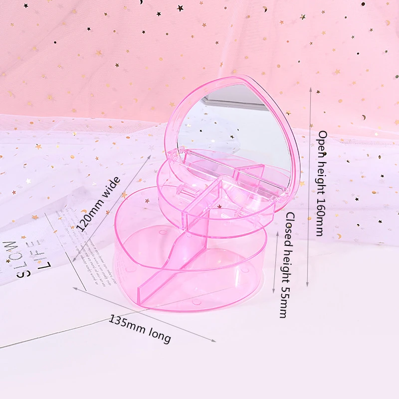 - Made of sturdy, transparent plastic with a glossy finish, offering visibility to easily identify contents at a glance. Its heart shape adds a cute, romantic aesthetic perfect for personal organization.