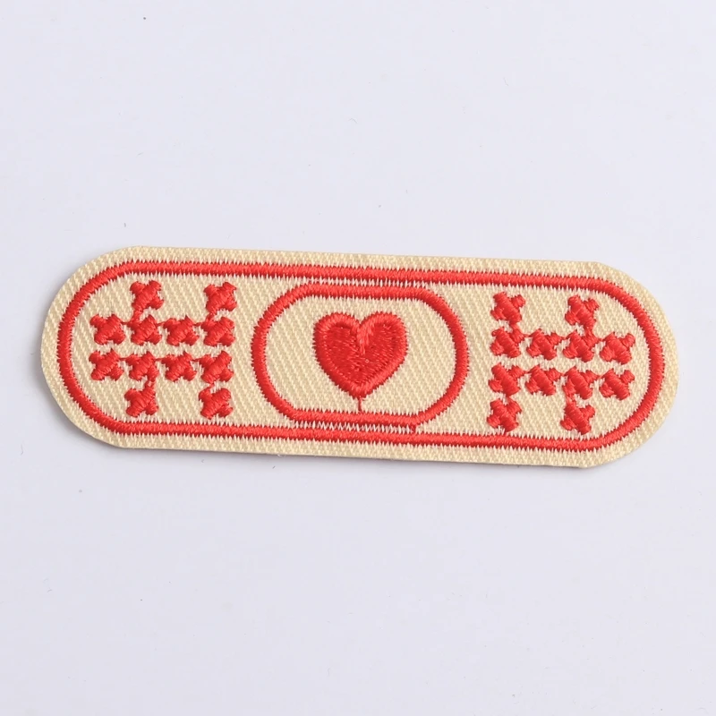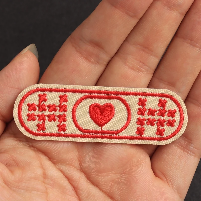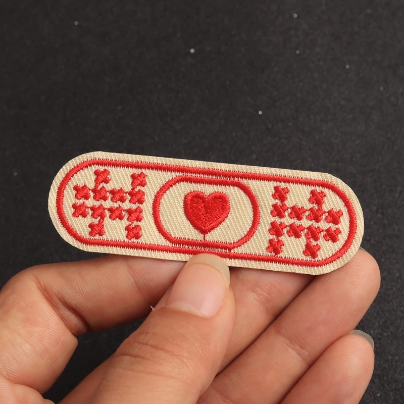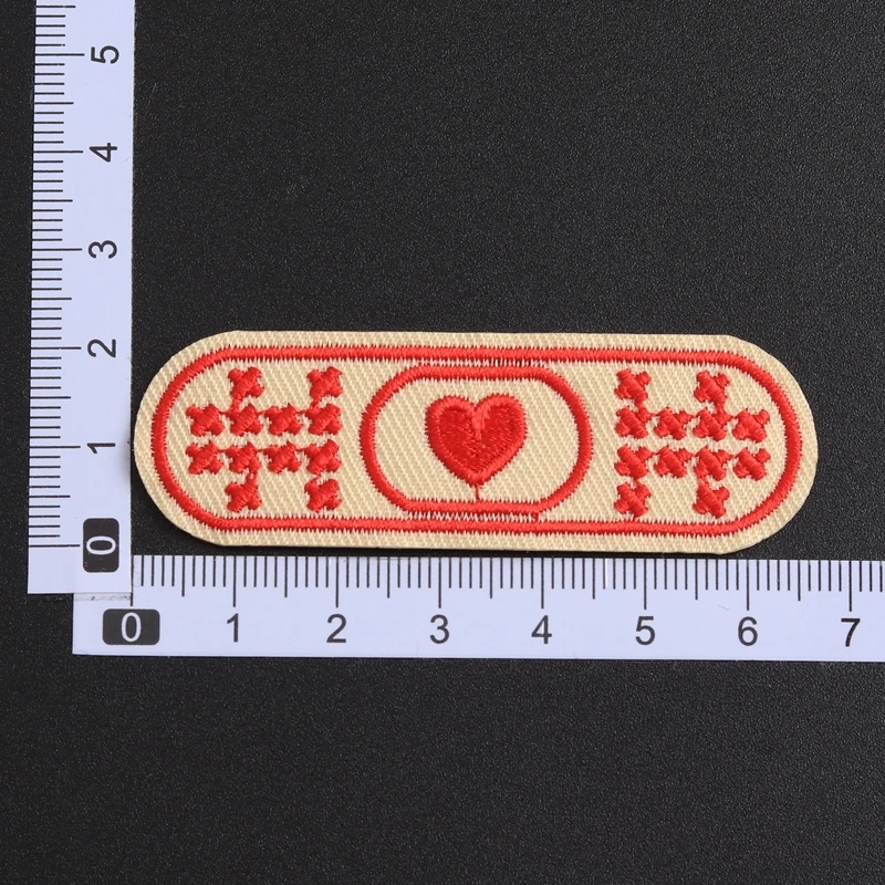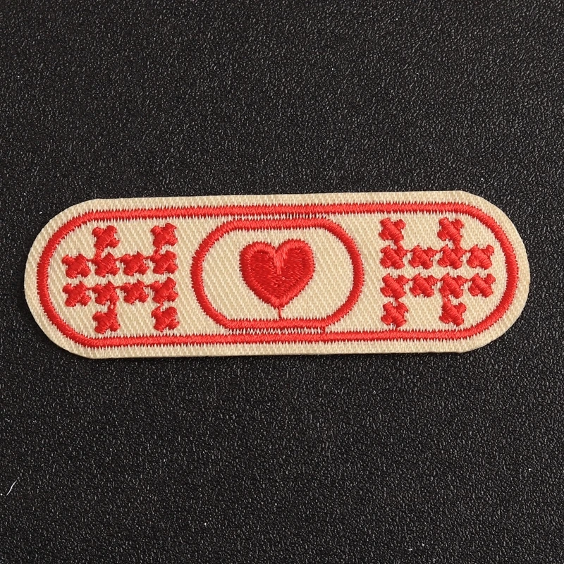 These charming love-themed band-aid patches are a delightful addition to your wardrobe and accessories. Each patch measures 6.1 x 2.1 cm and features a light beige or cream background that beautifully complements the bold red heart and intricate detailing. Made from non-woven fabric, these patches are designed for easy iron-on application, allowing you to personalize your t-shirts, bags, and more with a touch of love. Handmade and eco-friendly, they provide a unique and playful way to express your style, adding life and character to your outfits while offering a durable finish. Indulge your creativity and wear your heart on your sleeve!