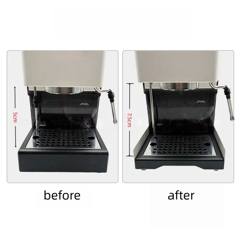 Enhance your Gaggia coffee machine with this sleek, low profile drip tray modification kit. Designed for space-saving efficiency, the tray’s height is reduced to just 2.8cm, allowing larger cups and mugs to fit comfortably underneath. Crafted from durable ABS plastic with a smooth matte finish, it combines modern elegance with functional design. The kit includes high-quality stainless steel springs for precise pressure regulation at 6Bar, 9Bar, and 12Bar, as well as a polished stainless steel drainpipe and nozzle with a reliable sealing structure. These components work together to optimize water flow and drainage, making your coffee experience smoother and more enjoyable. Perfect for both home baristas and professional setups, this upgrade seamlessly integrates with compatible Gaggia models, elevating overall performance and convenience.