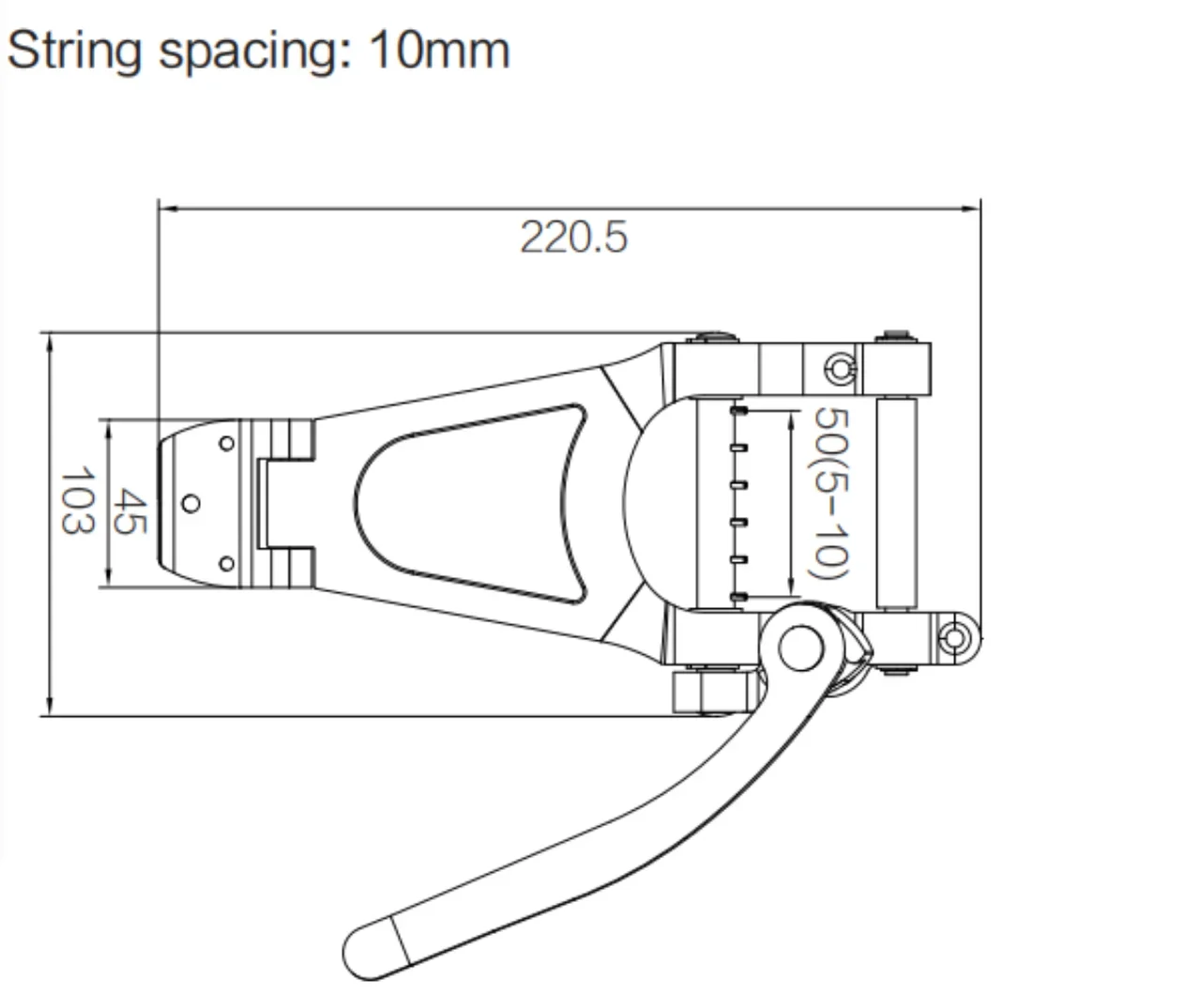 - Technical specs include no batteries required, metal construction, precise pivot points, and compatibility with standard tremolo configurations.