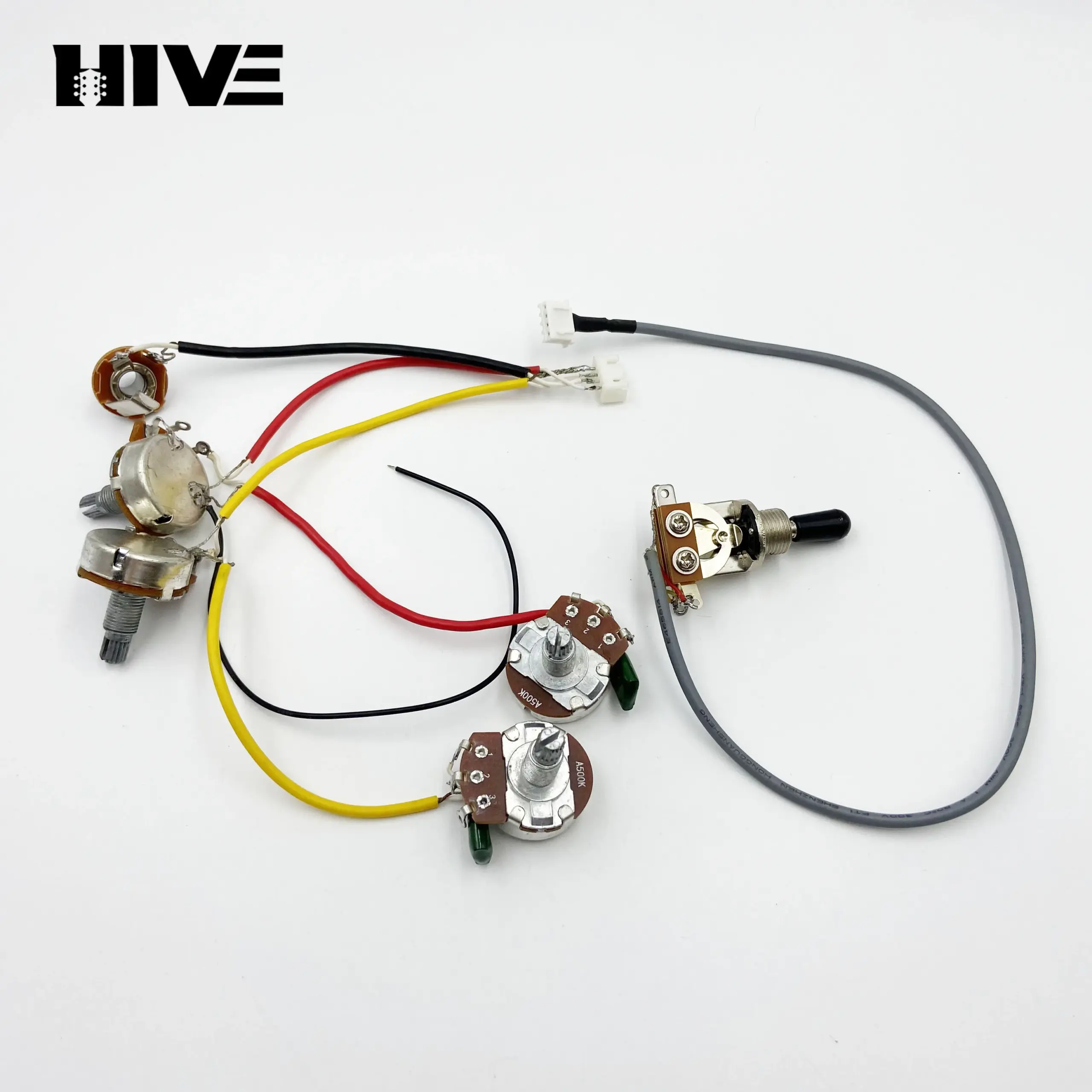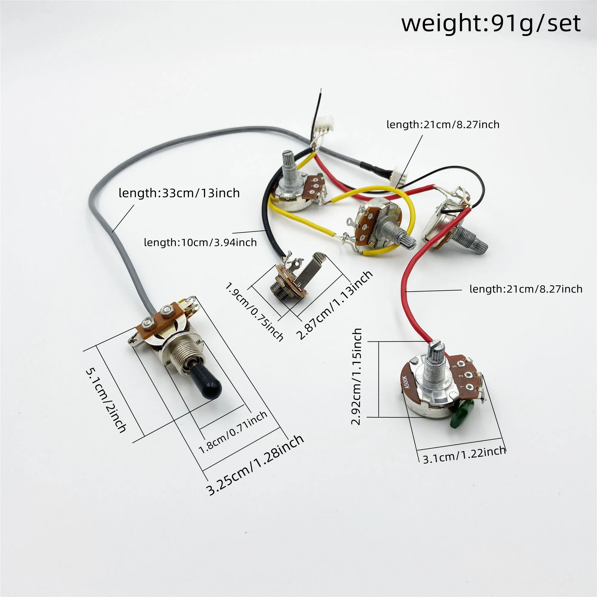 Enhance your electric guitar with this durable, metal open-type plug-in line circuit amplifier switch kit in the “2T2V1J” color. Designed for practicality and ease of installation, it features a switching line electronic guitar circuit, two potentiometers with metallic shafts for precise control, a minimalist black toggle switch, and vibrantly colored wires—including red, yellow, black, gray, and white—that ensure reliable wiring and connection. Its compact, industrial aesthetic combines sleek metallic surfaces with simple plastic insulating parts, providing a robust and functional accessory to elevate your instrument’s performance. Perfect for customizing and upgrading your musical setup with quality and style.