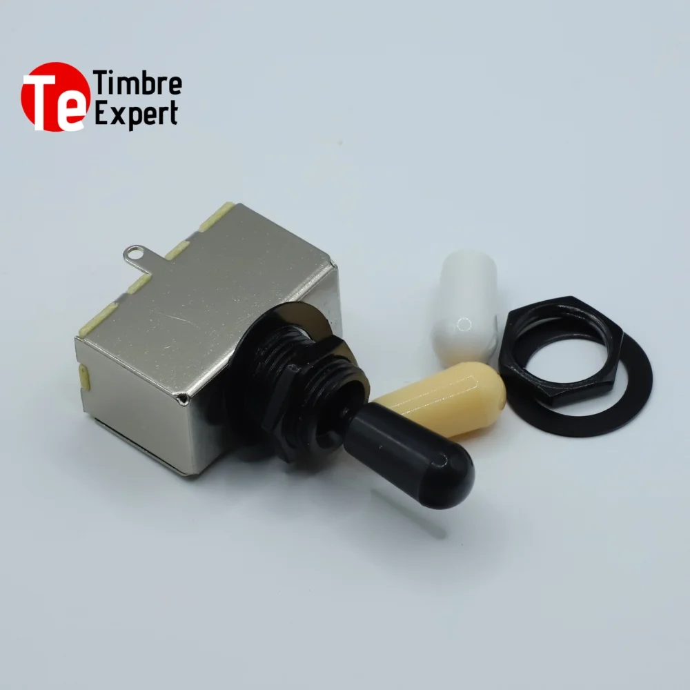 - Operates quietly with a sturdy mechanism providing noise-free toggling between pickups, eliminating pops and noise during switching.