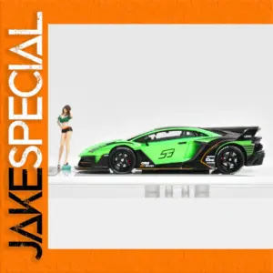 Experience the thrill of owning this highly detailed scale replica of the LP700 GTEVO, meticulously crafted for adult collectors and enthusiasts. This 1:64 scale diecast model features a bright, glossy green body accented with matte black details, emphasizing its sporty, race-inspired aesthetic. The sleek, low-profile design highlights sharp lines, ventilation accents, and bold racing graphics, including a distinctive black “S” logo. The black multi-spoke rims and branding on the tires enhance its high-performance appearance. The prominent rear wing, front splitter, and diffuser complete the aggressive look, making it a stunning display piece. Its metallic construction ensures durability and a premium feel, perfect for showcasing in your collection or workspace.