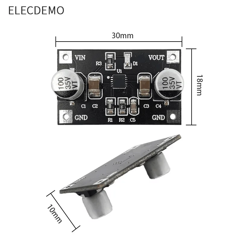 Imagine refining your analog circuits with this high-performance LT3042 linear regulator module. Its sleek, black minimalist PCB embodies efficiency and precision, presenting a compact 30mm x 18mm x 9.1mm design that fits seamlessly into your technical setup. The organized layout highlights surface-mounted components, including two generous electrolytic capacitors and a central high-quality IC, all clearly labeled for easy integration. The clean, modern aesthetic emphasizes functionality while ensuring optimal low-noise, stable power delivery. With its precise labels and layout, this module naturally inspires confidence, making it an ideal choice for enthusiasts and professionals aiming for ultra-low ripple, high stability, and exceptional performance in sensitive high-frequency or analog applications.
