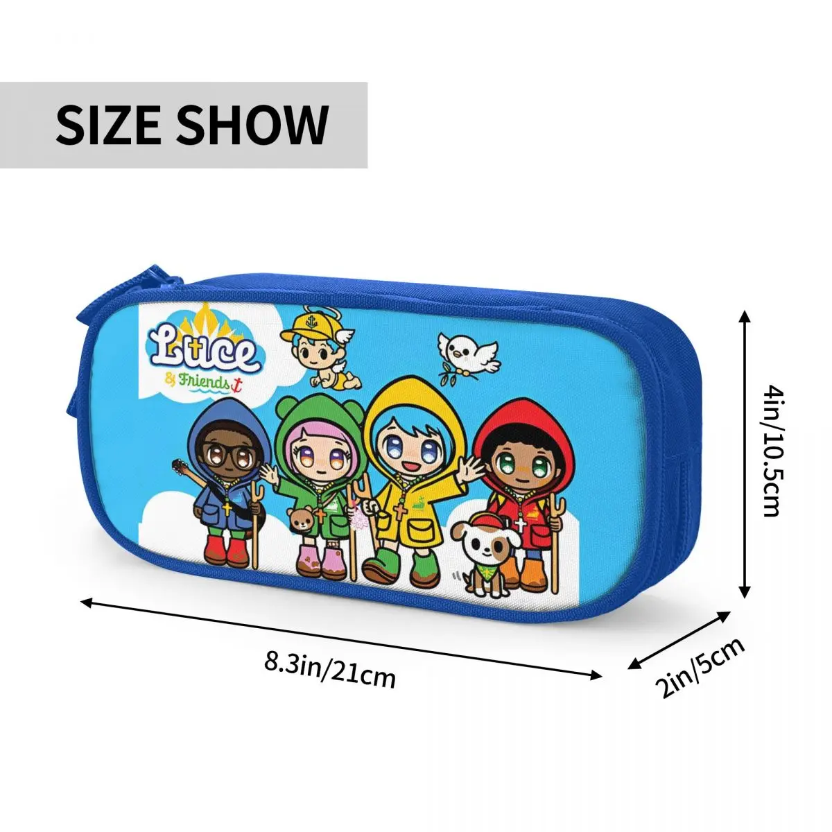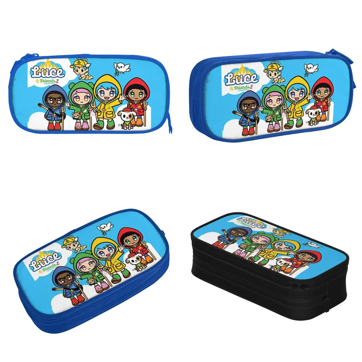 The Luce Vatican Mascot Pencil Case is a vibrant blue storage solution designed for both school and office use. Adorned with whimsical cartoon characters in colorful raincoats, the engaging design invites creativity and fun. Its rectangular shape features a sturdy zipper for secure storage, and the leather material ensures durability. With ample space for various stationery items, it’s perfect for organizing your pencils, pens, and more. This novelty pencil case is also available in black and pink options, catering to diverse styles while providing a practical and attractive accessory for students and professionals alike.