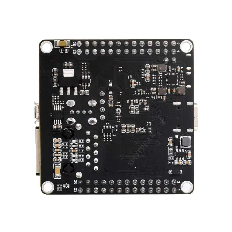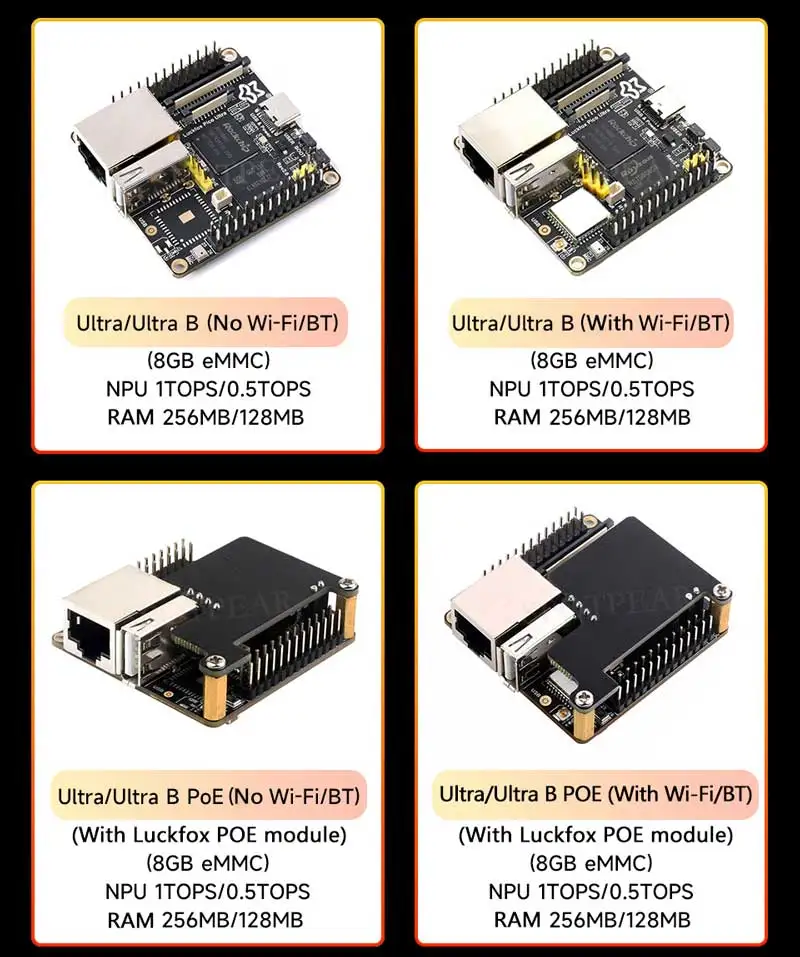 Experience the power of embedded computing with this stylish and highly functional Luckfox Pico Ultra B. Crafted with a sleek black PCB, it offers a minimalist yet professional look ideal for any development environment. The prominent metallic Ethernet port provides a shiny contrast to the matte surface, while the small black pin headers and neatly placed surface-mounted components contribute to its clean, organized aesthetic. Bright orange “SpotPear” logo and yellow jumper accents add lively touches. Designed to blend form and function seamlessly, this board creates a confident impression of precision engineering. Whether you're a developer seeking high-performance features or an enthusiast exploring advanced connectivity options, this board's visual appeal underscores its reliability and cutting-edge technology, inspiring confidence with every glance when integrated into your projects.