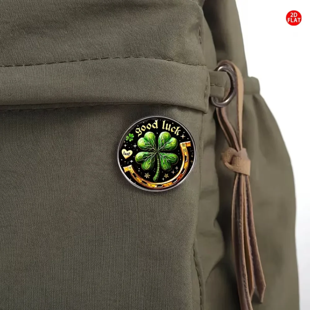 Imagine enhancing your style with this striking Lucky Clover Drop Brooch, a unique accessory that combines vintage elegance with mystical allure. Crafted from durable alloy, this decorative pin features a vivid, stylized four-leaf clover in bright green, accentuated by detailed vein patterns that give it a lively three-dimensional appearance. The elegant black background is sprinkled with tiny white star-like sparkles, creating a celestial, magical effect perfect for expressing personality. At the top, the gentle curves of the phrase “good luck” are written in a warm beige hue, adding a charming touch to the design. On the left, a small heart inscribed with “lust” contrasts beautifully against the other lucky symbols, while on the right, a rustic gold-gradient horseshoe topped with Asian or decorative characters adds vintage flair. This versatile piece is perfect for jackets, backpacks, hats, or DIY clothing projects, elevating your style with its enchanting design.