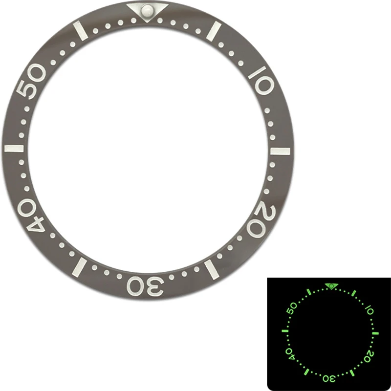 Enhance your SKX007 or SKX009 diver’s watch with this high-quality luminous ceramic bezel insert. Measuring 38mm outside diameter and 31.5mm inside diameter, it features a glossy, scratch-resistant surface with a lustrous finish that withstands demanding conditions. The bright green C3 glow numerals and markers provide excellent visibility in low-light and underwater environments, while the evenly spaced minute track with larger numerals at 10, 20, 30, 40, and 50-minute intervals ensures precise timing. Crafted from durable stainless steel and ceramic, it offers corrosion resistance and a perfect fit for NH35 and NH36 movements, making it an ideal upgrade for your professional diver’s watch.