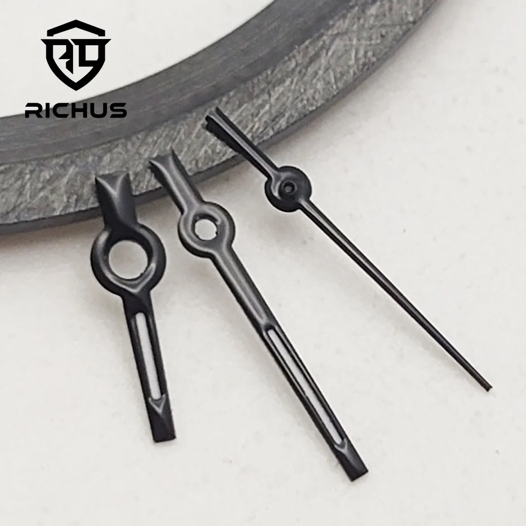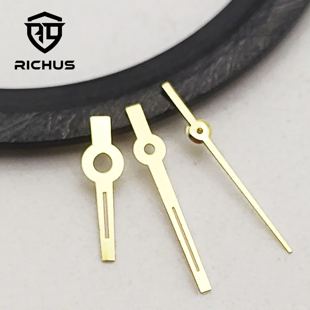 Experience the perfect blend of style and precision with this set of luminous watch hands from RICHUS, designed specifically for NH05 and NH06 movements. Crafted from stainless steel, these hands feature a sleek, polished finish in five vibrant colors: black, blue, silver, gold, and rose gold. The elongated, broad shapes of the hour and minute hands create a modern, minimalist aesthetic, while the thin, long second hand adds an element of refined elegance. Each hand measures 8mm x 8mm x 5mm from the central hole to the tip, ensuring a precise fit on compatible watch movements. The luminous green coating enhances visibility in low-light conditions, combining functionality with stunning visual appeal. These customizable hands are perfect for watch repair, modification, or personalization.