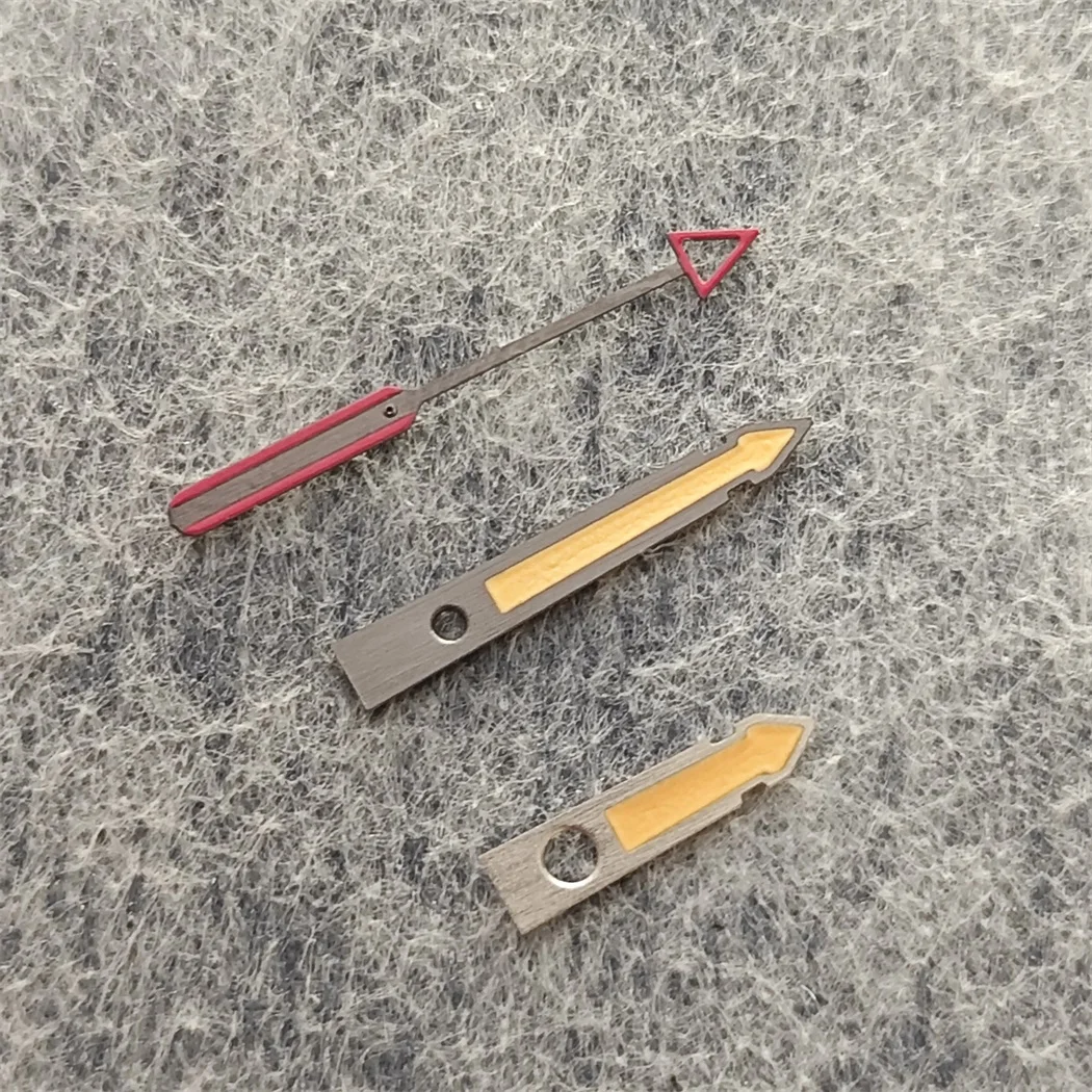 Elevate your watch repair with this set of stainless steel watch hands featuring a sleek silvery finish and bright yellow luminous tips for enhanced visibility in low light. Compatible with popular Japan movements including NH35, NH34, NH36, 4R, 7S, and NH70, each hand measures approximately 8mm x 12mm x 12.5mm. The hour and minute hands are slim and elongated, with polished silver outlines, while the second hand is ultra-thin with a red triangular luminous tip for precise timekeeping. Perfect for creating a modern, functional look, this set ensures your watch remains clear and readable even in darkness.