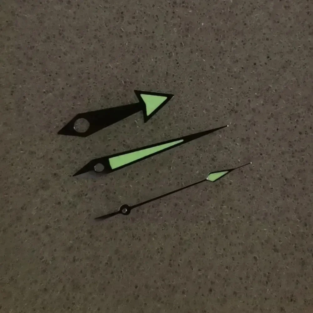 Immerse yourself in precision watch customization with this set of luminous watch hands designed specifically for NH35, NH36, 4R, and 7S movements. Crafted with a sleek, modern aesthetic, these hands feature a bright yellow-green luminous fill that glows softly in low light, enhancing readability and style. The broad, arrow-like hour and minute hands are accentuated with sharp contrast, thanks to their dark outlines against the luminous triangle inserts. The slender second hand tapers to a fine point, with a luminous segment near its base, adding a subtle brilliance. Measuring 10mm x 13mm x 14mm from center to tip, these hands combine utility with elegance, making them ideal for both repair and custom builds.