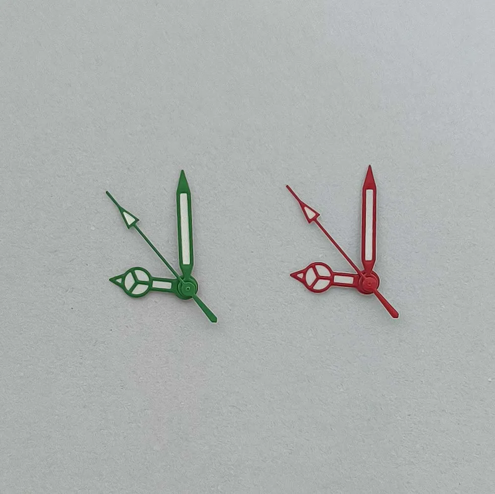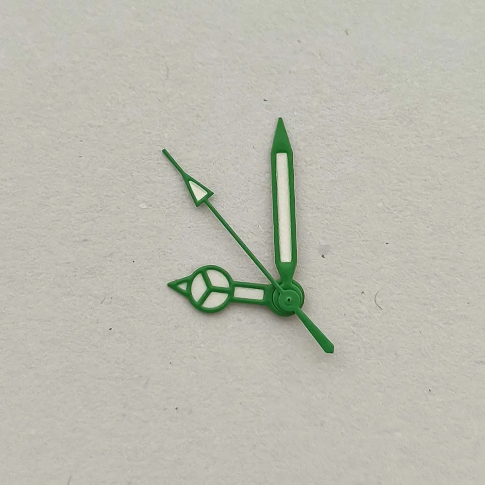 Enhance your watch repair collection with this expertly crafted set of luminous watch hands compatible with NH35, NH36, 4R, and 7S movements. Designed for precision and durability, these hands feature vibrant luminous colors ensuring high visibility in low-light conditions. The set includes a sleek, needle-like green luminous hand measuring 7.75mm x 12mm x 13mm, perfect for seconds or seconds subdial. The red options include a broader, flat hand with a rounded ring at the base, ideal for minutes or hour indicators, and an intricate, gear-inspired red luminous hand with openwork details, adding a touch of modern elegance. Crafted from lightweight, smooth-finish materials, these hands seamlessly match existing watch models, enhancing both functionality and aesthetics.