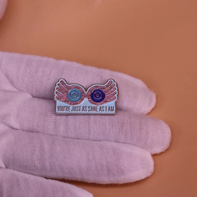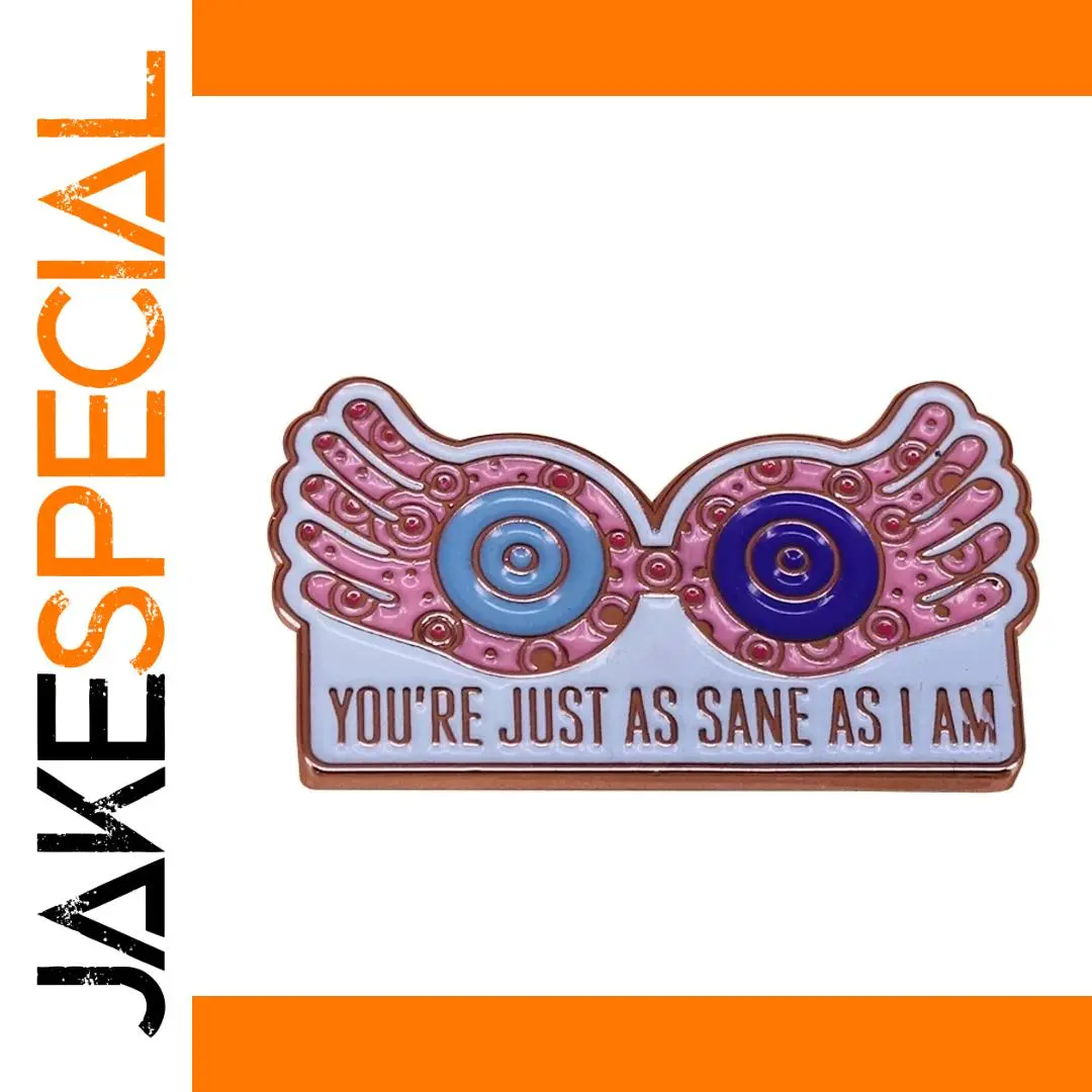 - Approximately 30 mm copper brooch with vibrant enamel finish, featuring Luna Lovegood’s signature glasses design and quote, perfect for everyday wear and fandom expression.