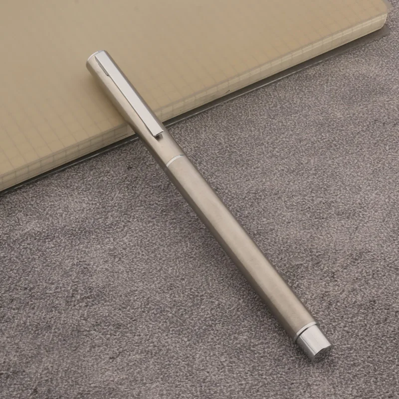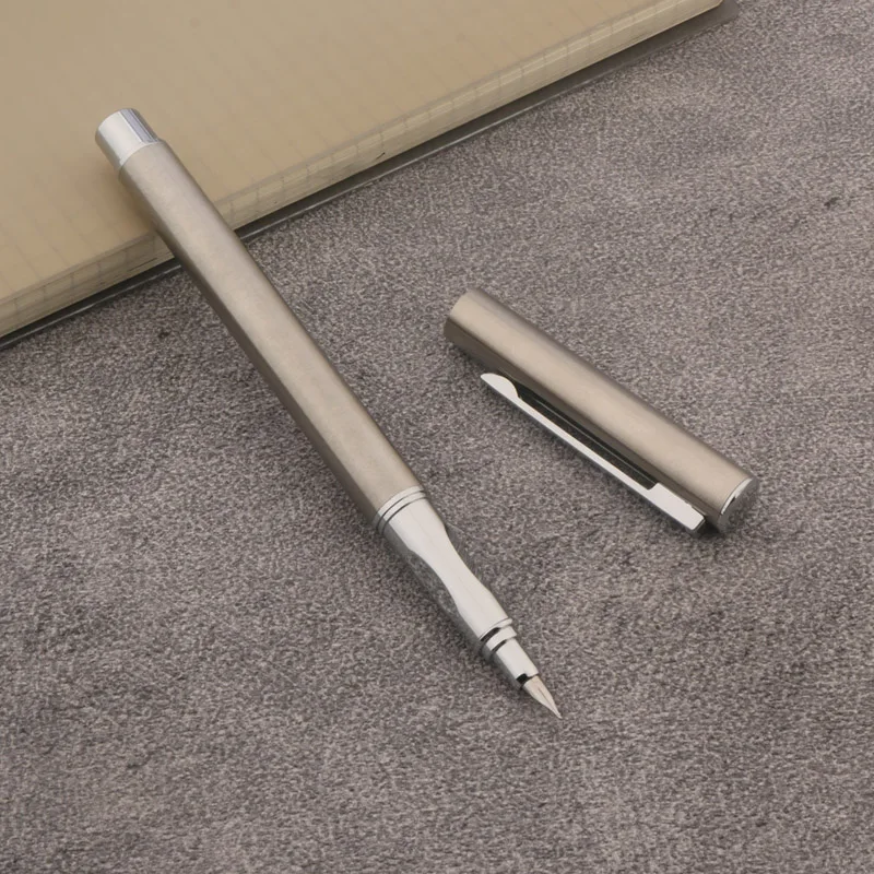 - This luxurious fountain pen has a polished stainless steel body and cap, giving it a sleek, reflective finish that emphasizes durability and a high-end appearance suitable for any setting.