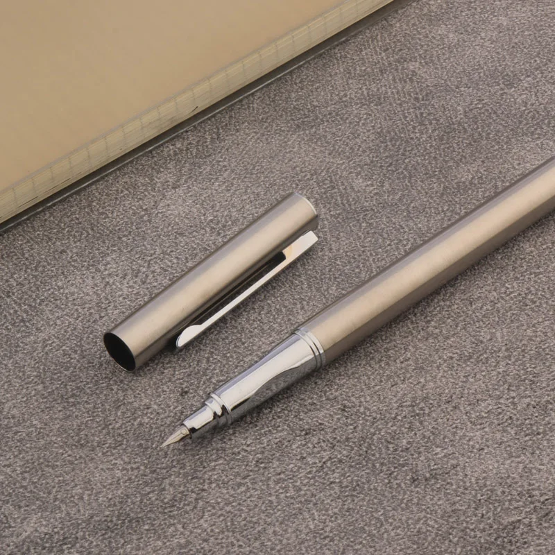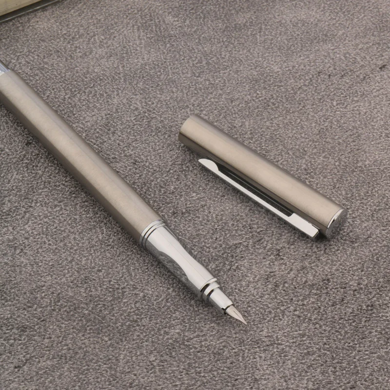 Envision yourself holding this elegant stainless steel fountain pen, adding a touch of class to every note, letter, or signature. Its timeless design and high-quality craftsmanship will make it your trusted writing instrument. Whether as a sophisticated gift or personal upgrade, this pen offers both style and functionality, ensuring your writing truly stands out. Invest in quality and enjoy the finesse of this beautifully crafted piece that’s built to last. Achieve precision and elegance in all your written communications — this is the perfect addition to your collection.