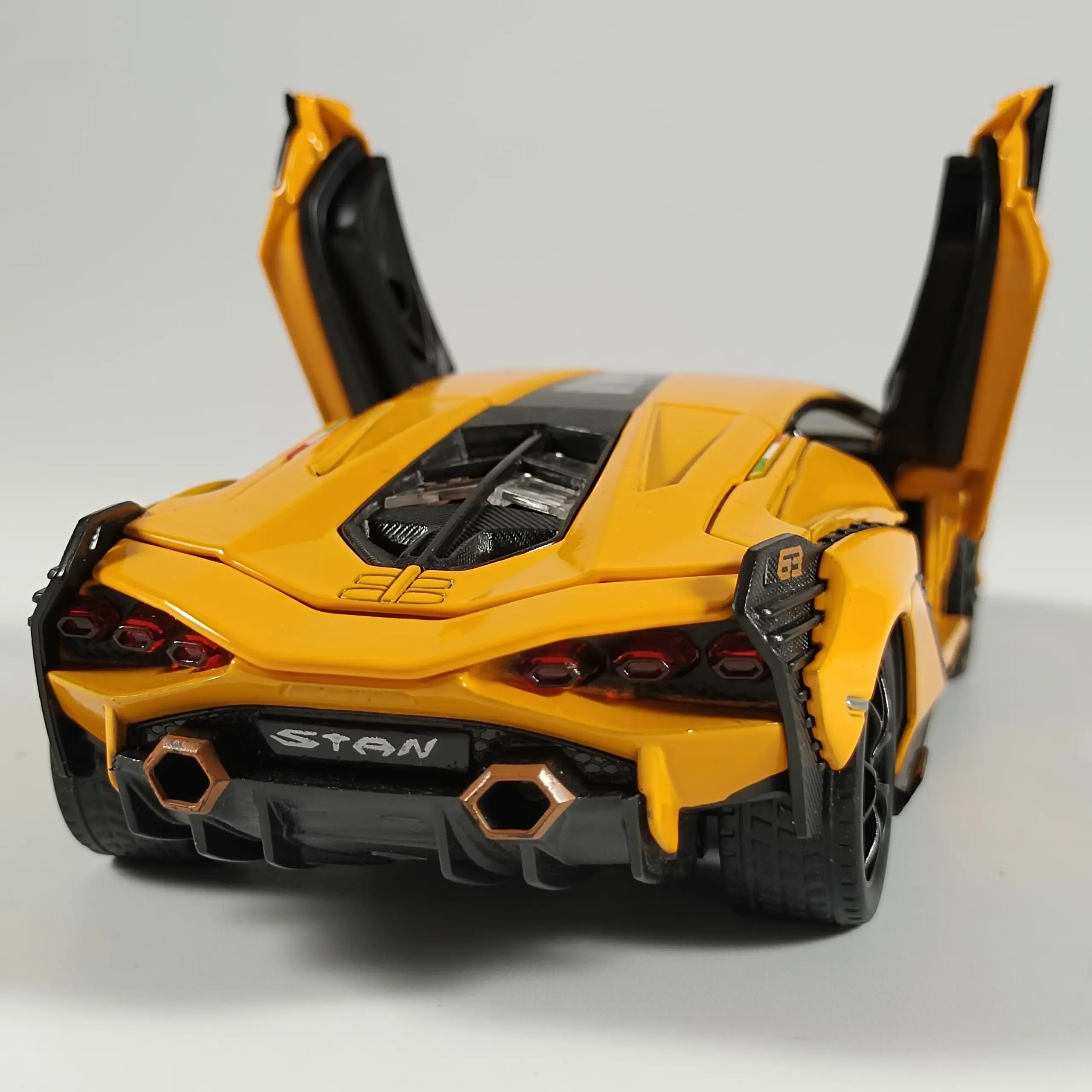 - Includes upward-opening scissor doors with visible hinges and interior details, providing an interactive and realistic display experience.