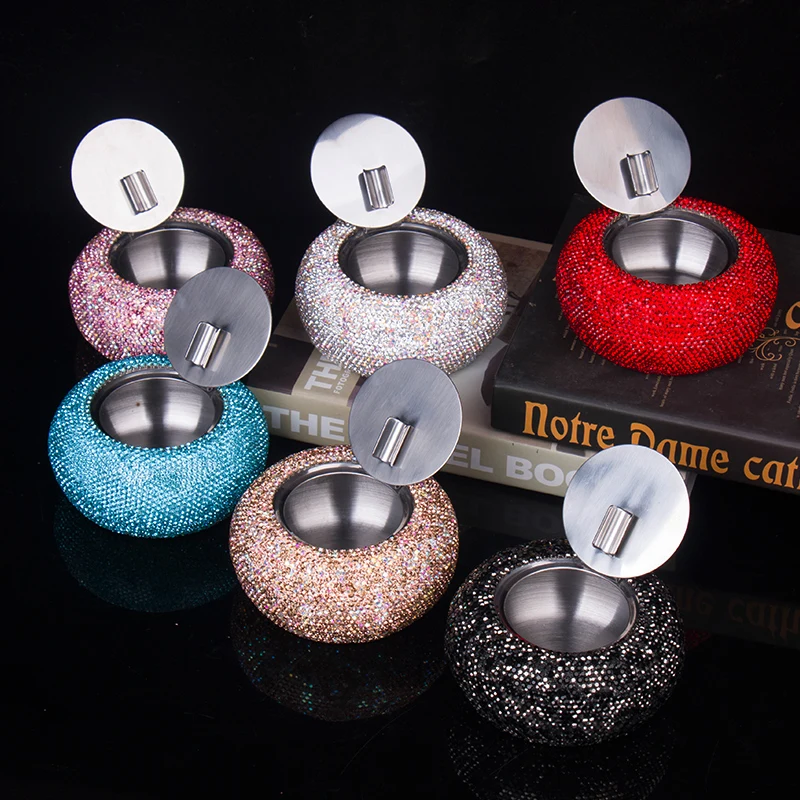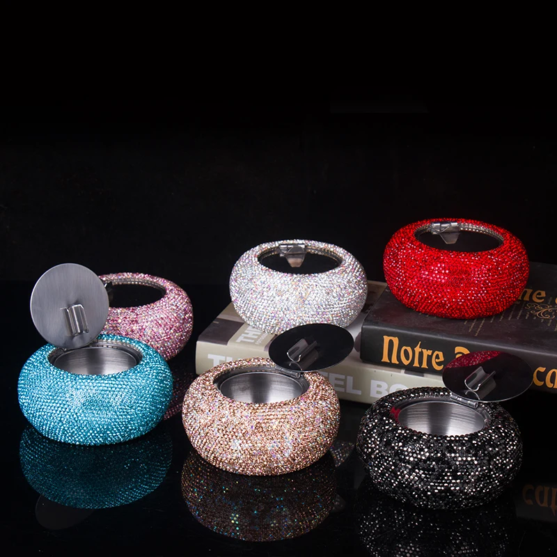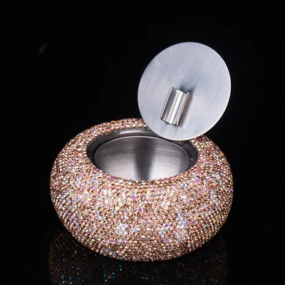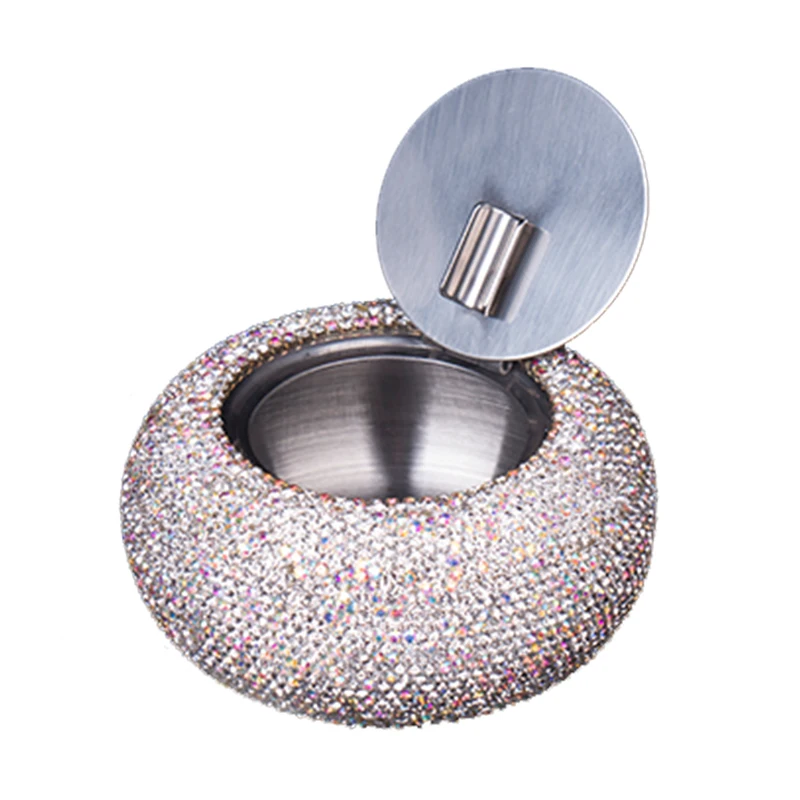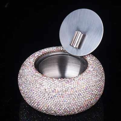 Elevate your smoking experience with this luxurious rhinestone-encrusted ashtray, perfect for stylish interiors or vehicles. Its dazzling appearance combines elegance with practicality, making it an excellent choice for discerning users. Imagine placing it on your coffee table or hotel lounge, adding a touch of sparkle that impresses guests. Designed to last with high-quality stainless steel and sparkling rhinestones, this ashtray is both beautiful and functional. Whether for personal use or as a stylish gift, it guarantees a glamorous touch to any setting. Don't wait—make this beautiful piece yours today and enjoy the perfect blend of sophistication and convenience.