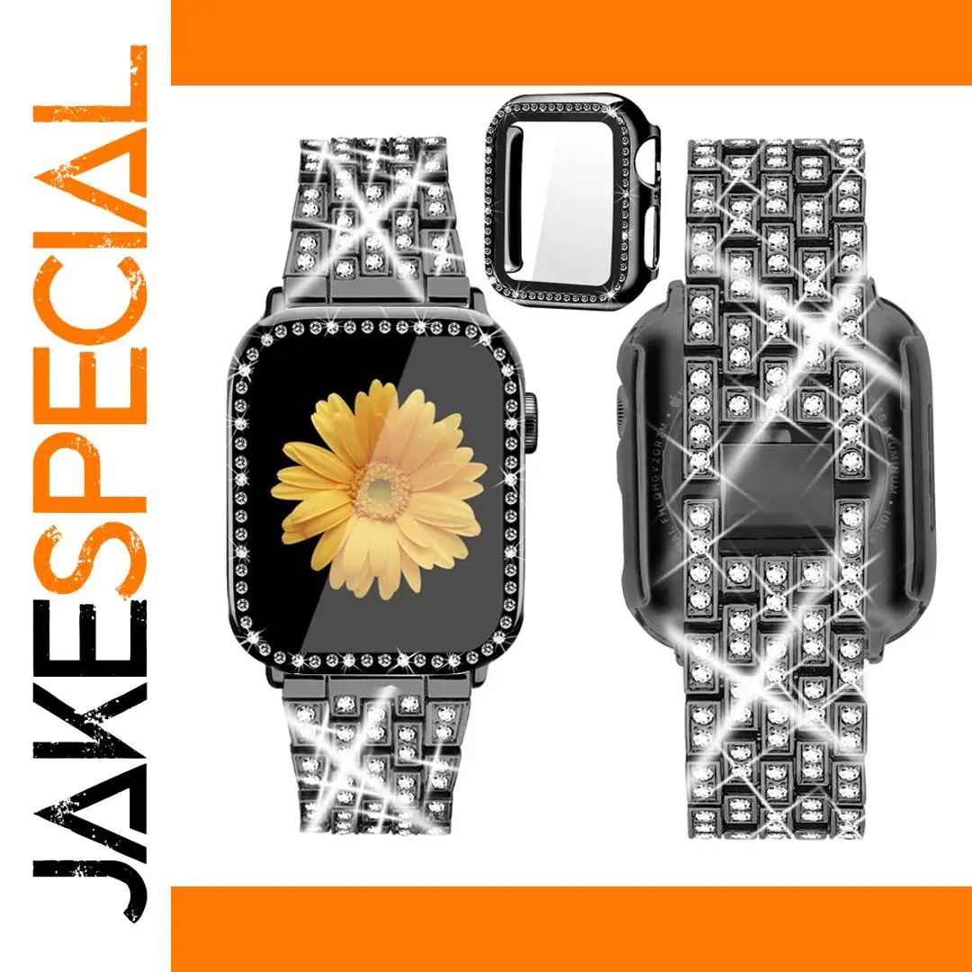 Transform your Apple Watch into a luxurious statement piece with this stunning diamond-encrusted band and protective cover. Crafted from high-performance stainless steel, the band and case feature countless pave-set rhinestones that illuminate with a dazzling sparkle, accentuating the rectangular face of the watch. Available in multiple stunning colors—black, pink gold, rose gold, silver, and starlight—this accessory exudes elegance and glamour. The adjustable band ensures a perfect fit on wrists from 5.5 to 8.1″, with removable links for added customization. The protective cover, encrusted with matching rhinestones, encases your device while allowing effortless access to all features, blending style and practicality seamlessly. Elevate your daily look with this exquisite jewelry-inspired accessory.