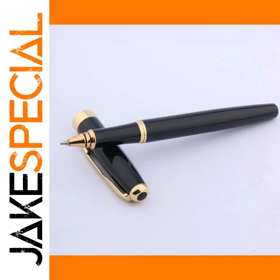 Experience sophistication and elegance with this luxury black rollerball pen, perfect for professional and personal use. Weighing only 35 grams, it offers a comfortable grip while maintaining a sleek, cylindrical metal body finished in glossy black. The pen’s striking gold trim, including a fine gold band near the top, complements the shiny arrow-shaped clip, which adds a distinctive decorative touch. The rounded gold-colored cap, topped with a black circular detail, enhances the luxurious aesthetic. Equipped with a precise 0.5mm non-erasable writing point, this pen is ideal for signature work, business, and daily writing tasks. Available in multiple color options, it combines style with functionality for refined writing experiences.