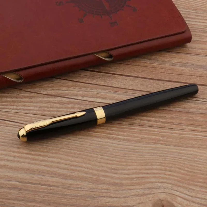 - Constructed with durable metal, this pen weighs just 35 grams, ensuring both lightweight comfort and durability for daily use. It features a glossy black finish accented with polished gold details.